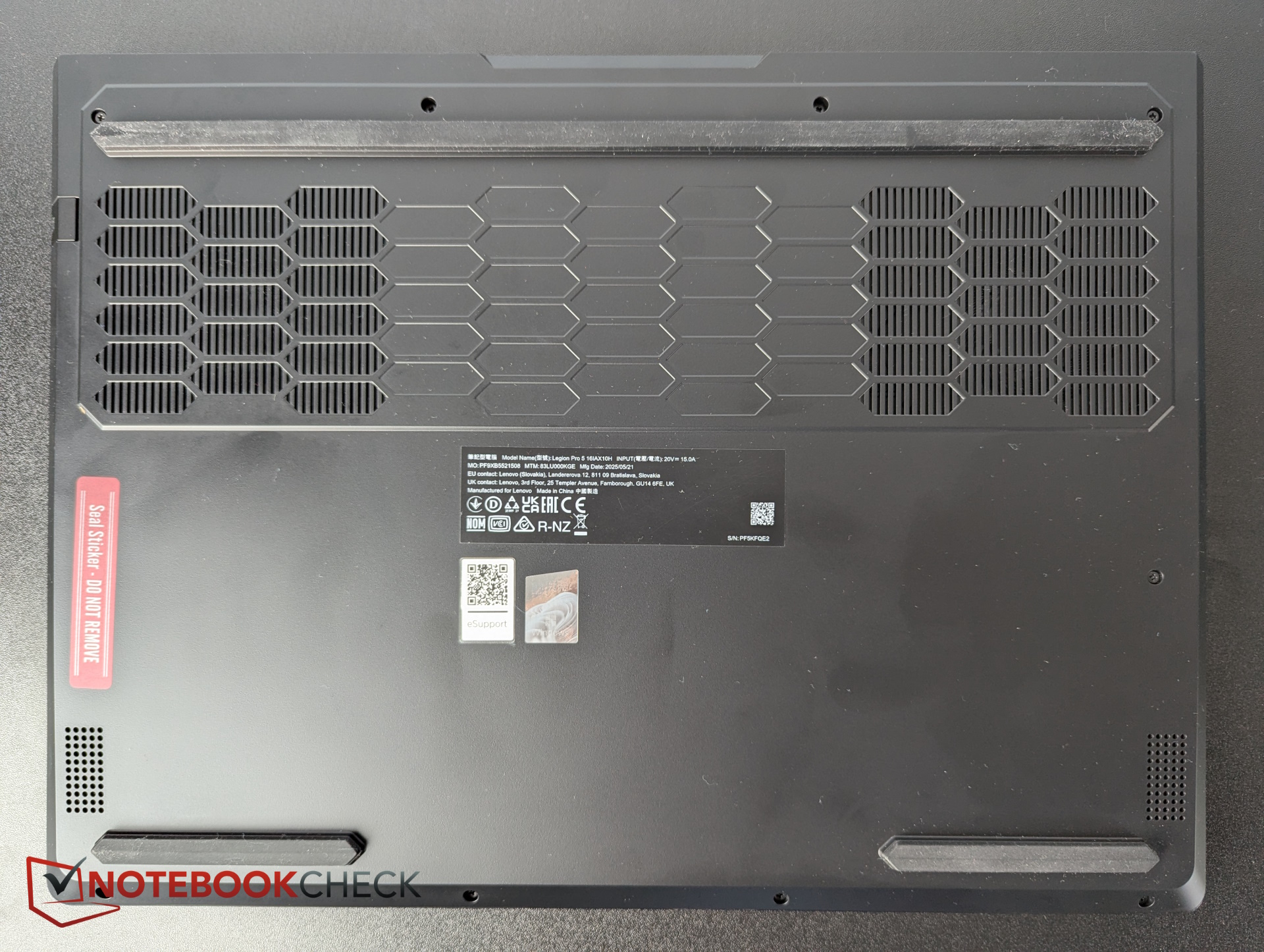 Im Vergleich zum Vorgänger ist das neue Gehäuse etwa 1 mm dünner, dafür aber 1 mm tiefer und 6 mm breiter. Alle anderen Laptops dieser Klasse sind weniger breit, dafür ist unser Legion Pro 5 mit der dünnste, wenn man Blade 16 und G16 außer Acht lässt. Zudem hat es 100 g abgespeckt.