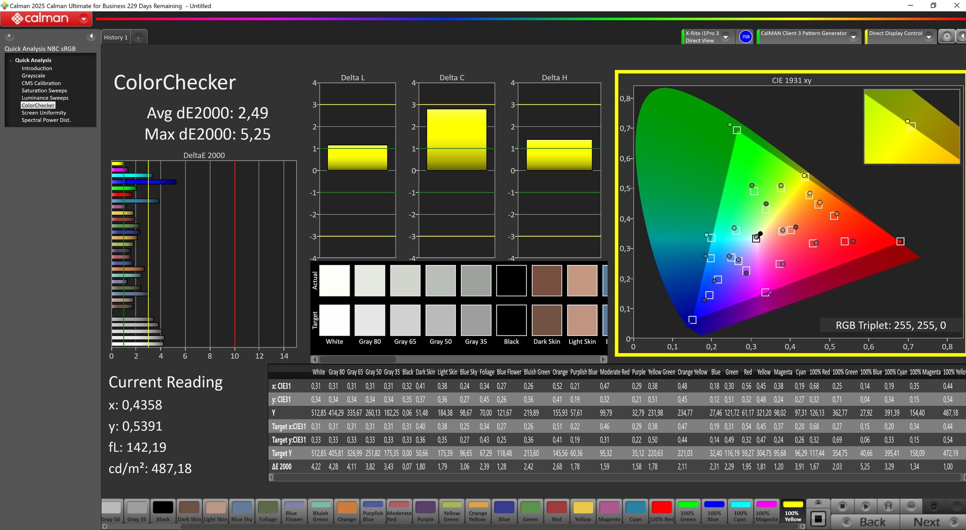 ΔE ColorChecker Calman: 2.49 | ∀{0.5-29.43 Ø4.78}