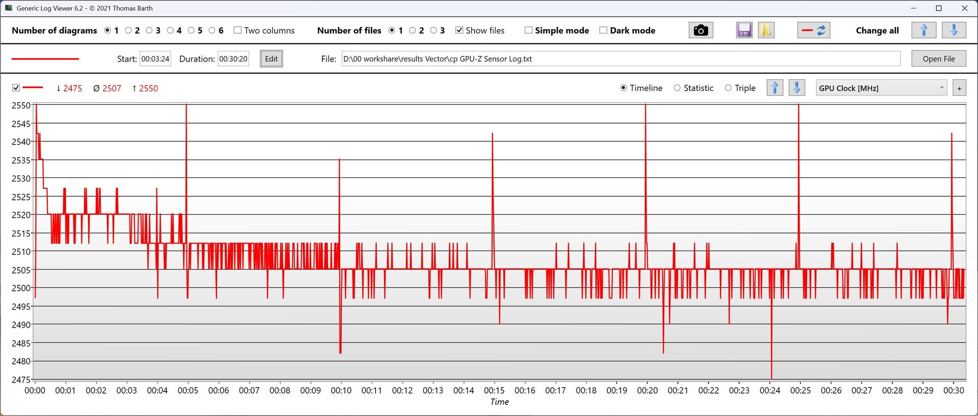 | CPU Clock (GHz) | GPU Clock (MHz) | Average CPU Temperature (°C) | Average GPU Temperature (°C) | |
