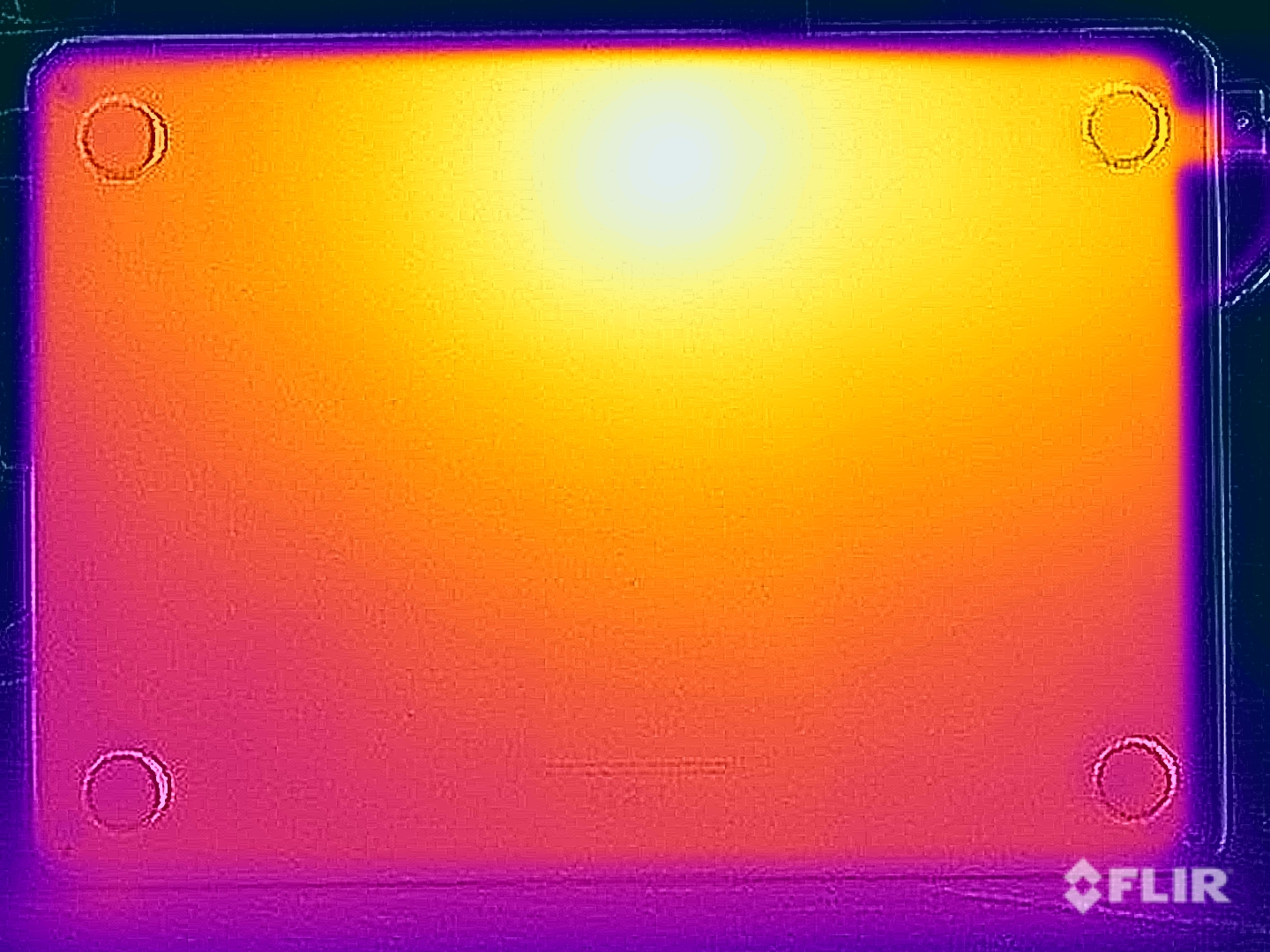 (±) Auf der Unterseite messen wir eine maximalen Wert von 42.6 °C (im Vergleich zum Durchschnitt von 39.3 °C).