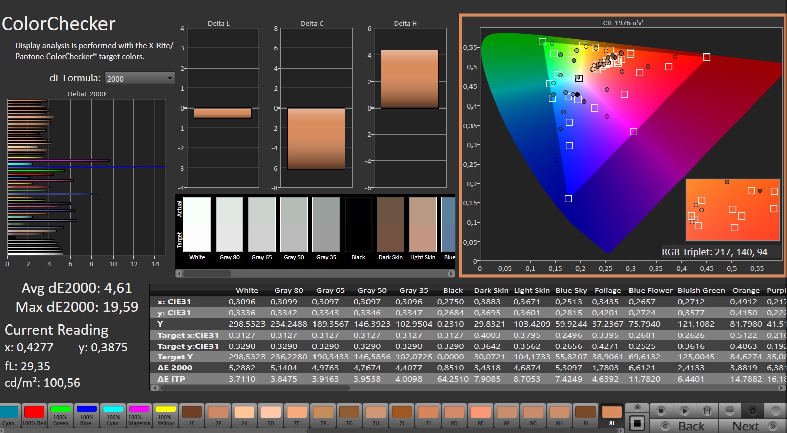 ΔE ColorChecker Calman: 4.61 | ∀{0.5-29.43 Ø4.76}