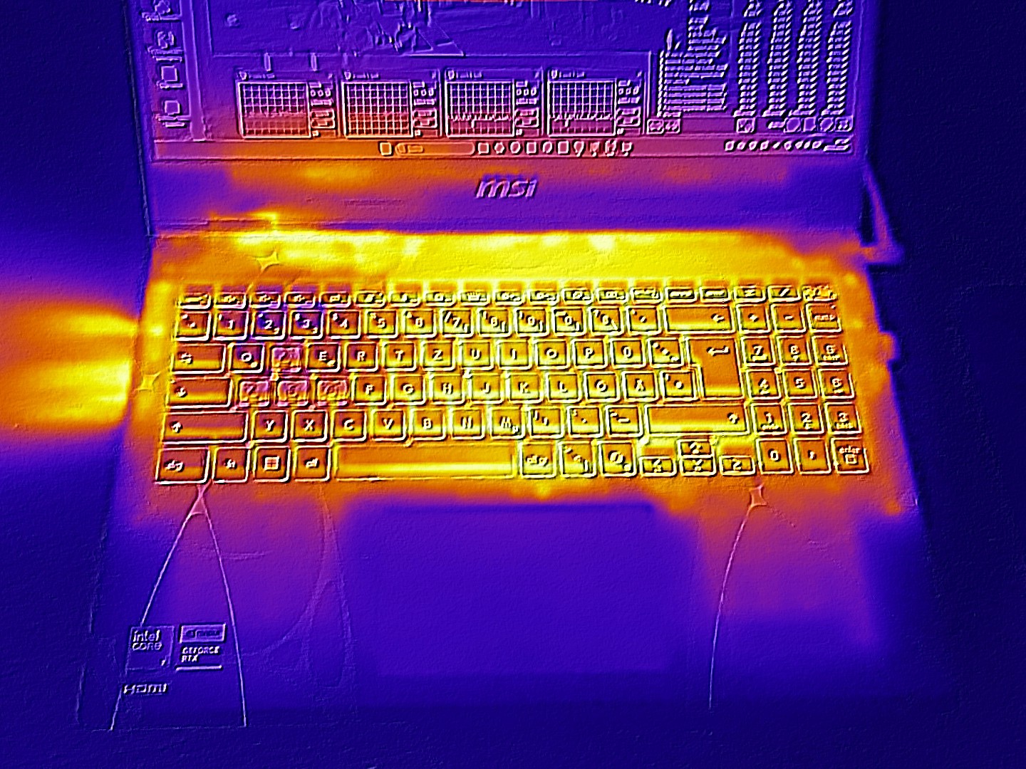 (+) Die Handballen und der Touchpad-Bereich erreichen maximal 32 °C und damit die typische Hauttemperatur und fühlen sich daher nicht heiß an.