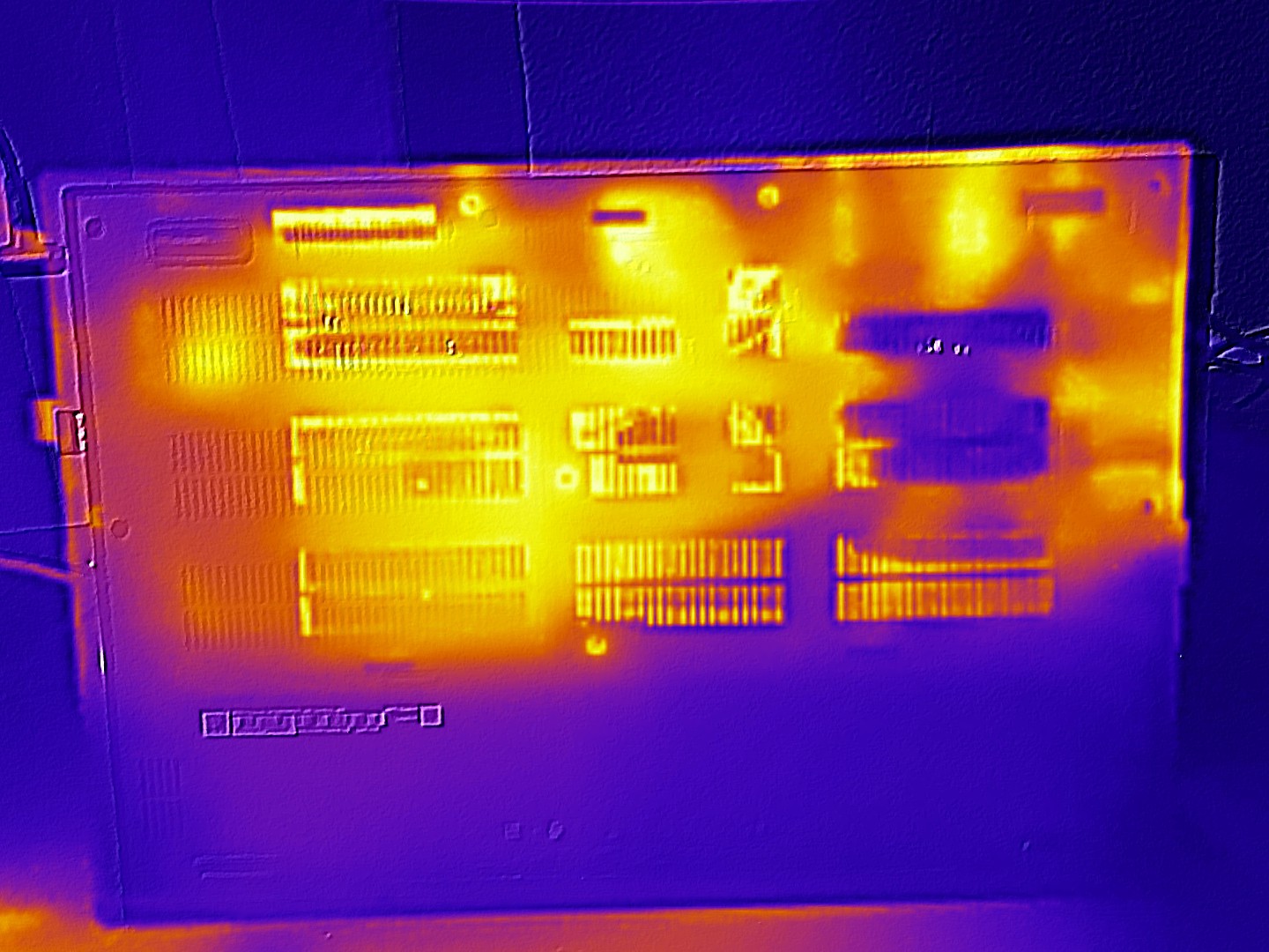 (±) Ohne Last messen wir eine durchschnittliche Temperatur von 32.6 °C auf der Oberseite. Der Klassendurchschnitt erreicht 33.9 °C.