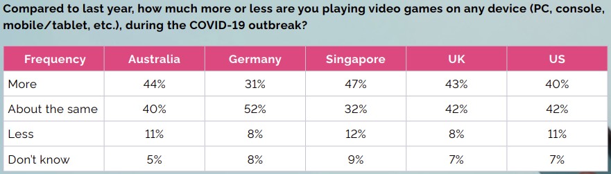 Die Studie geht auch auf die Relevanz von Gaming nach der Corona-Krise ein. Hierbei zeigen sich deutliche Unterschiede zwischen den untersuchten Ländern. 42 Prozent der deutschen Gamer gehen davon aus, dass Gaming mit dem Ende der Corona-Krise an Relevanz verlieren wird, da die Menschen merken, dass es im Leben Wichtigeres gibt. Unter US-amerikanischen Spielern sagen das nur 12 Prozent, unter britischen 13 Prozent.
