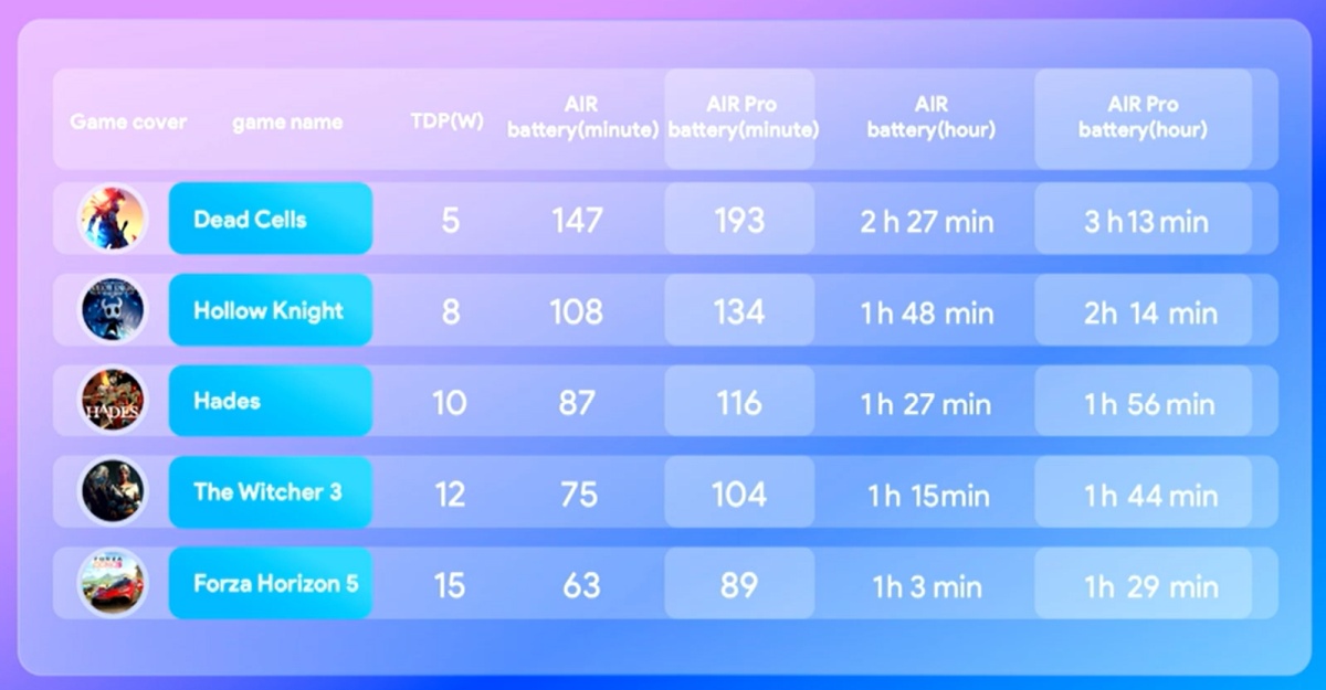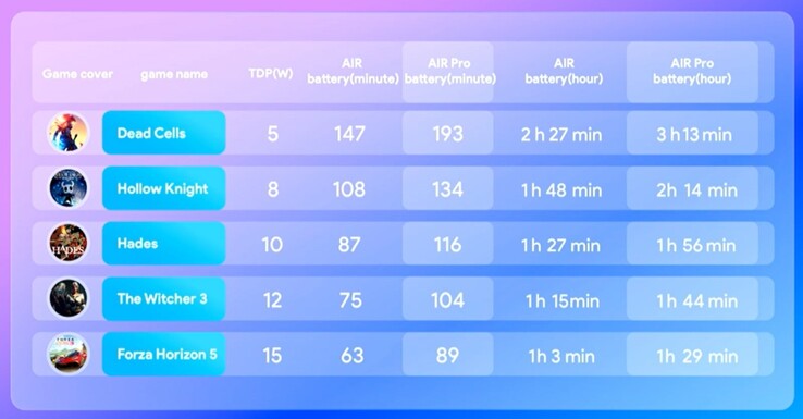 Denn Aya Neo bietet nicht nur mehrere dezentere Farben an, sondern auch ein limitiertes Modell in Gelb. Das Basismodell und das Pro-Modell unterscheiden sich vor allem in zwei Bereichen: Beim Akku und bei der Verlustleistung des Ryzen-Chip. Der 38 Wh Akku des Aya Neo Air Pro soll je nach Spiel zwischen 01:29 und 03:13 Stunden lang durchhalten, der 28 Wh Akku des Basismodells kommt auf 01:03 bis 02:27 Stunden.