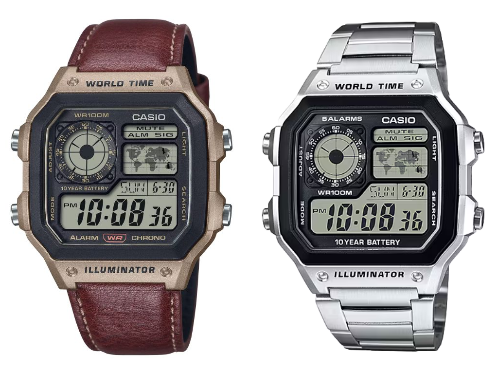 Die AE-1200WH wurde 2012 auf den Markt gebracht und erfreute sich aufgrund ihrer vielfältigen Funktionen und ihres erschwinglichen Preises schnell großer Beliebtheit. Ihr Design mit einer digitalen Zeitanzeige und einem kleinen analogen Hilfszifferblatt wurde von der Welt der Spionage inspiriert und erhielt aufgrund ihrer Ähnlichkeit mit der Seiko G757, die im James-Bond-Film Octopussy getragen wird, den Spitznamen "Casio Royale". Im Laufe der Jahre ist diese Casio-Uhr weitgehend unverändert geblieben.