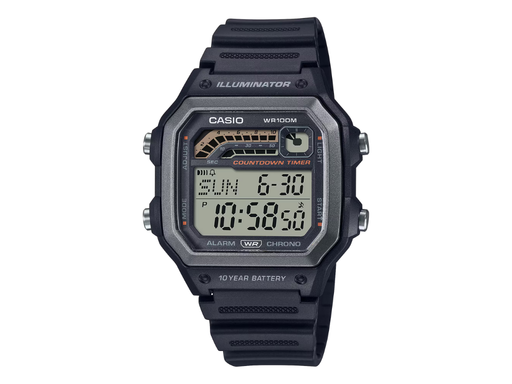 Die LED-Hintergrundbeleuchtung ist vielleicht nicht so gut wie bei Uhren mit der neueren 'Super Illuminator'-LED-Technologie von Casio, aber sie erfüllt ihren Zweck, die Zeit im Dunkeln anzuzeigen. Bemerkenswert ist auch, dass die Uhr 10 Jahre lang mit einer CR2025-Knopfzelle betrieben werden kann. Darüber hinaus ist sie mit einer Wasserdichtigkeit von 100 Metern für das Schwimmen und andere Aktivitäten im Wasser ausgestattet, auch wenn die Casio AE-1200WH keine Taucheruhr ist.