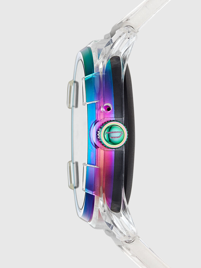 In diesem limitierten Set werden die kreativen Talente des digitalen Künstlers Mad Dog Jones für einen Diesel-typischen Look eingesetzt. Futuristische, auffällige Technik für das Handgelenk. Das Set umfasst eine 43 mm Fadelite Smartwatch, austauschbare Armbänder aus transparentem oder mehrfarbigem TPU sowie ein einzigartiges Reinigungstuch als cooles Sammlerstück.