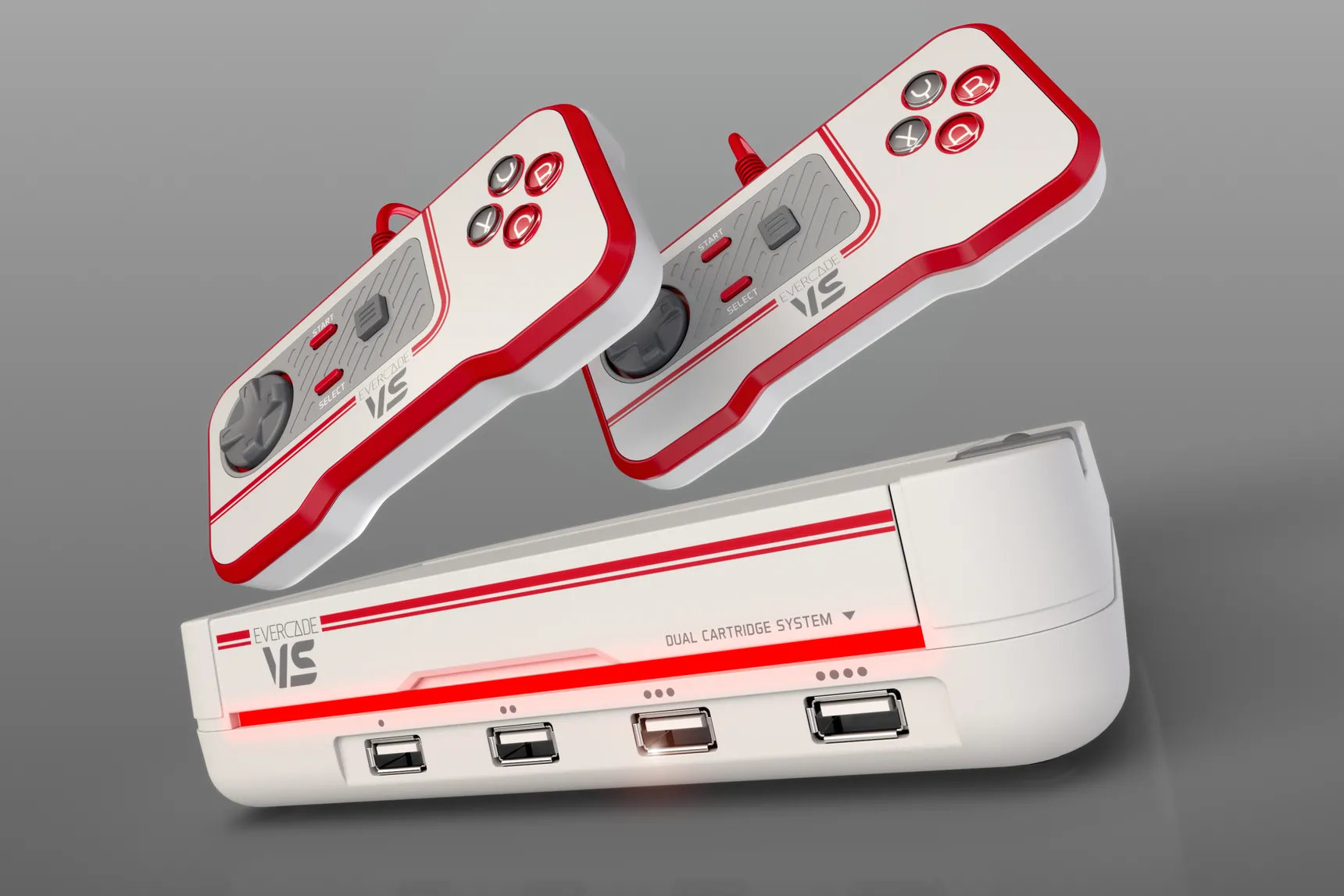 Nach dem Evercade Handheld hat das Unternehmen nun mit der VS eine Heimkonsole vorgestellt, welche dieselben Spielmodule aufnimmt. Der Hersteller verspricht eine Ausgabe in 1.080p-Auflösung sowie eine erstklassige Emulation, wie bei solchen Konsolen üblich unterstützt die Evercade VS die Ausgabe im 4:3-Format und Filter, welche den Look an alte Röhren-TVs anpassen sollen. Im Inneren arbeitet ein 1,5 GHz Quad-Core-Prozessor in Kombination mit 512 MB Arbeitsspeicher.