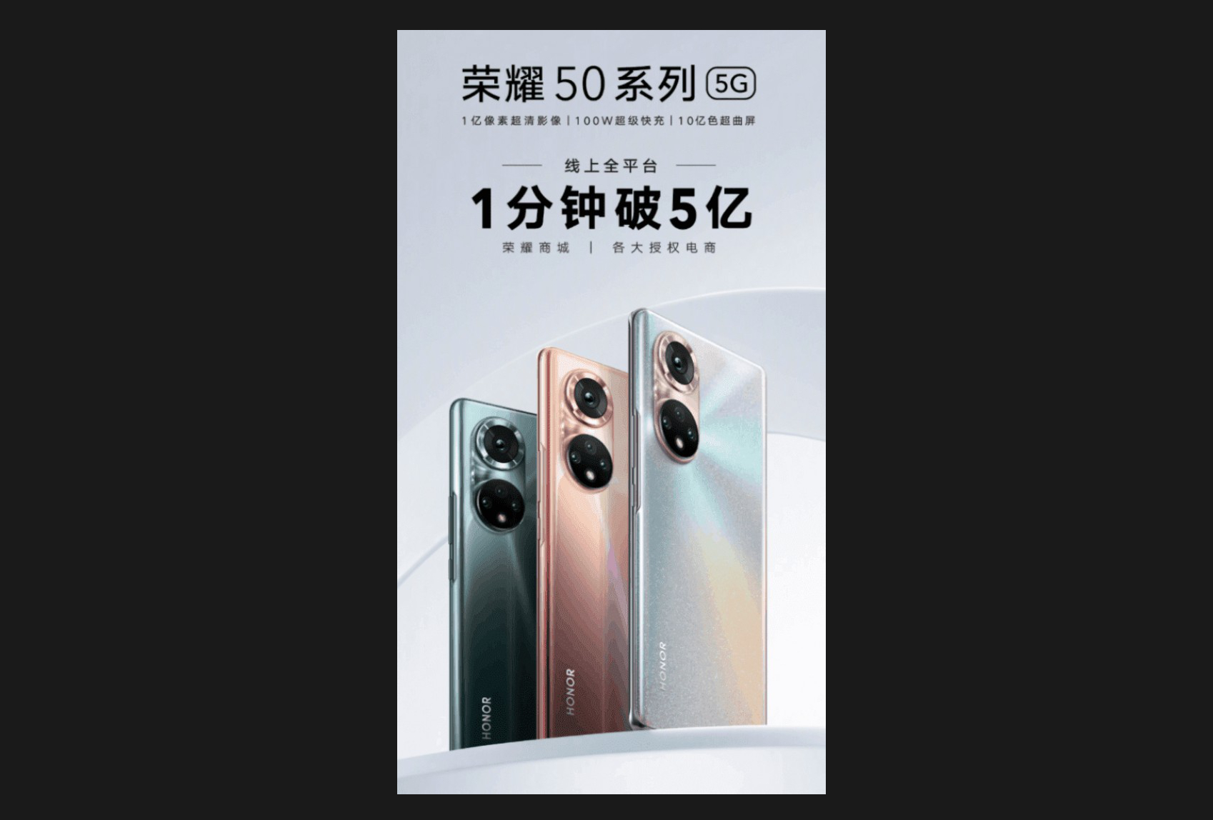 Unterdessen kann das Gerät in China bereits vorbestellt werden, und wie der Hersteller nun bekannt gegeben hat, wurden in nur einer Minute Honor 50-Smartphones im Wert von über 500 Millionen Yuan (ca. 65 Millionen Euro) verkauft. Die Preise reichen von 2.399 Yuan (ca. 309 Euro) für das Honor 50 SE bis hin zu 3.999 Yuan (ca. 515 Euro) für das Topmodell Honor 50 Pro mit 12 GB Arbeitsspeicher und 256 GB Flash-Speicher. Je nachdem, welche Modelle wie häufig verkauft wurden, hat sich die Honor 50-Serie in der ersten Minute nach dem Verkaufsstart zwischen 125.000 und 208.000 Mal verkauft.