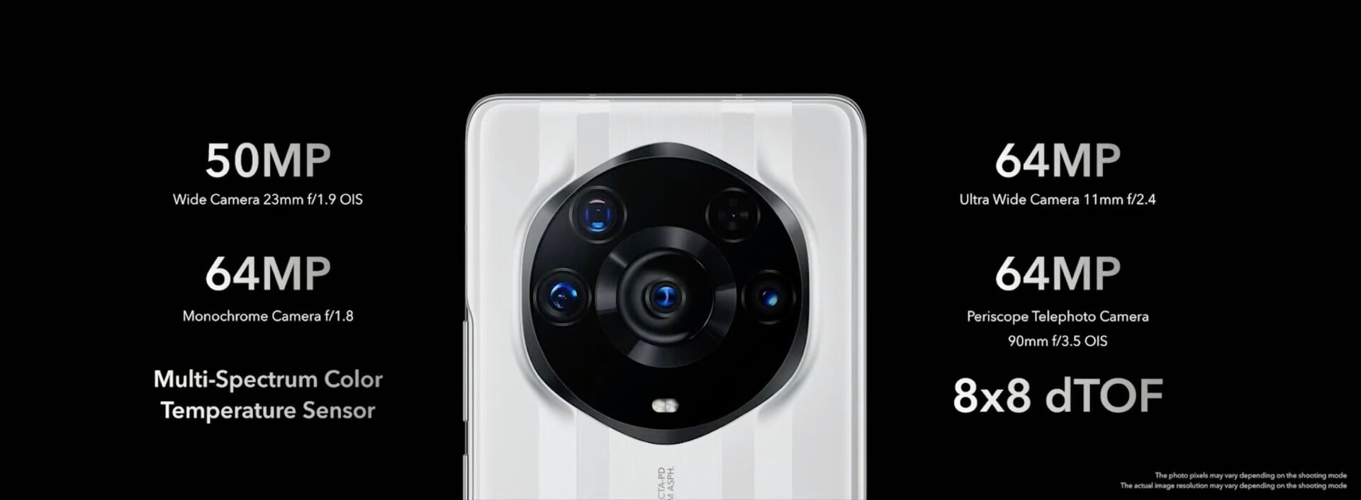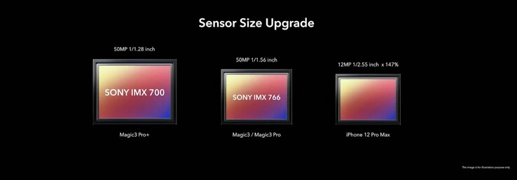 Das Magic3 Pro+ bietet auch einige technische Upgrades, vor allem bei den Kameras, denn die Hauptkamera setzt auf den größeren Sony IMX700-Sensor im 1/1,28 Zoll Sensor, und das Gerät ist mit einem zusätzlichen Sensor ausgestattet, der einen möglichst akkuraten Weißabgleich garantieren soll. Die Ultraweitwinkel-Kamera wird beim Topmodell mit einem 64 MP Sensor im 1/2 Zoll Format ausgestattet, die Kleinbild-äquivalente Brennweite von 11 mm ermöglicht einen noch größeren Bildwinkel als beim Magic3 Pro. Zusammen mit der 64 MP Monochrom-Kamera bietet das Magic3 Pro+ gleich vier hochauflösende Kameras mit großen Sensoren.