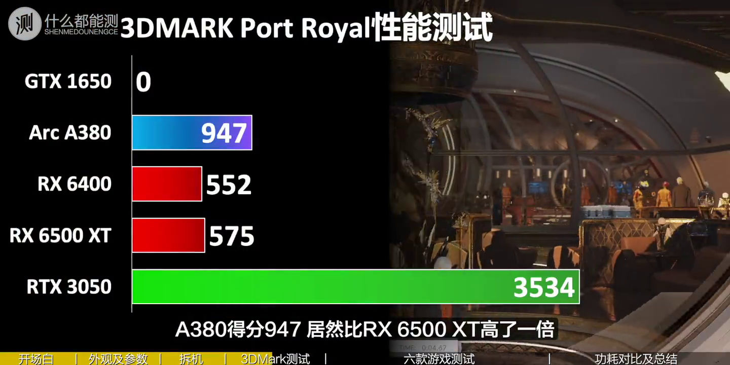 In 3DMark Port Royal kann die Arc A380 eine rund 65 Prozent bessere Raytracing-Performance als die Radeon RX 6500 XT erzielen, die Leistung der Nvidia GeForce RTX 3050 kann aber nicht annähernd erreicht werden. In 3DMark Time Spy können sowohl die Radeon RX 6400 als auch die GeForce GTX 1650 um rund 42 Prozent übertroffen werden.