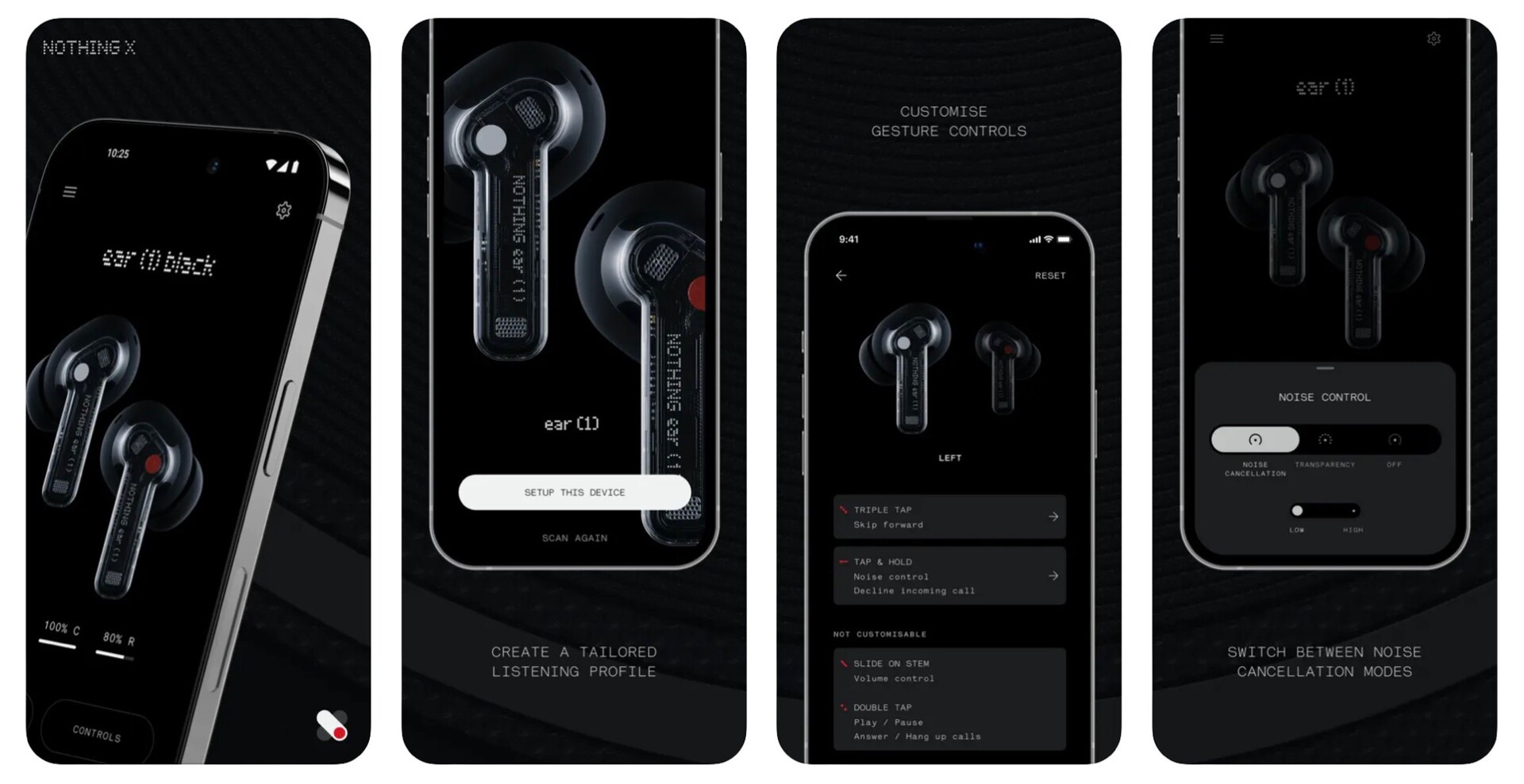 Die Nothing X App erlaubt es, die aktive Geräuschunterdrückung der Nothing Ear (1) zu aktivieren, die ANC-Modi zu wechseln, die In-Ear-Erkennung zu deaktivieren, die verbleibende Akkuladung der Ohrhörer und der Ladehülle einzusehen und Firmware-Updates zu installieren. Es ist auch möglich, die Ohrhörer über "Find My Earbuds" aufzuspüren. Die Nothing X App ist ab sofort über Apples App Store und über den Google Play Store verfügbar.