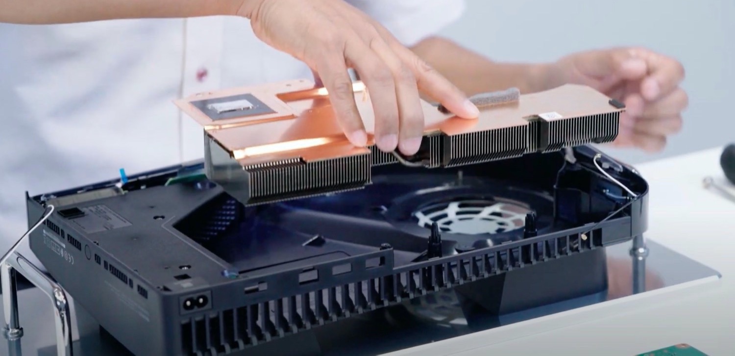 Der Rest vom Teardown zeigt den großen Lüfter, das Disk-Laufwerk und vor allem das Mainboard, das im Detail erklärt wird. Sony zeigt dabei die AMD-APU, den Systemspeicher, die SSD-Chips und mehr. Interessant ist, dass Sony auf Flüssigmetall setzt, um die Abwärme von der APU möglichst effektiv abzuführen – die Entwicklung dieses Kühlsystems soll über zwei Jahre gedauert haben. Besonders spannend ist auch der gigantische Kühlkörper, der wohl zum großen Teil für die massive Größe der Konsole verantwortlich sein dürfte – dieser ist im Video etwa bei Minute 06:25 zu sehen.