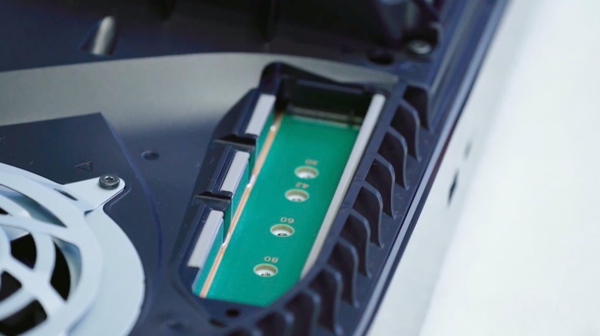 Ist man erstmal im Inneren angelangt, so findet man zwei Öffnungen, in denen der Staub gesammelt werden soll – clever, denn so lässt sich die PS5 schnell entstauben, indem man einen Staubsauger an die entsprechenden Stellen hält. Die PCIe 4.0 M.2 SSD befindet sich unter einer Abdeckung, die durch eine weitere Schraube geschützt wird, sodass das Speicher-Upgrade in nur wenigen Minuten erledigt werden kann – das geht bei der Xbox Series X zwar noch schneller, dafür ist das Speicher-Modul dort auch deutlich teurer.