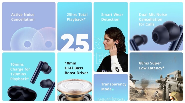 Die Realme Buds Air 2 werden zuerst in Indien für eine unverbindliche Preisempfehlung von 3.299 INR (ca. 37,50 Euro) ausgeliefert, nähere Informationen zum Preis und zur Verfügbarkeit im Rest der Welt stehen noch aus. Die Realme Budsd Air 2 sind in den Farben Schwarz und Silber / Weiß erhältlich, im Lieferumfang befinden sich Ohrstöpsel in drei Größen.