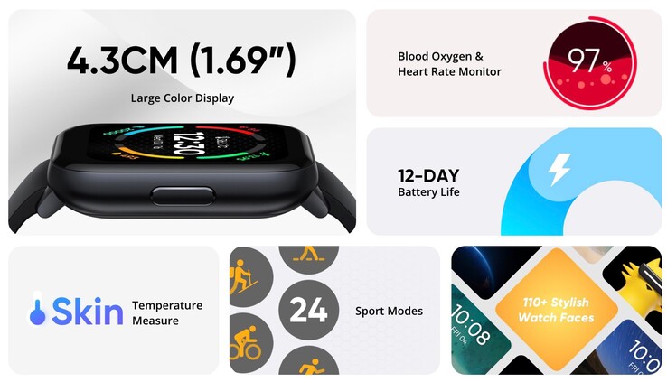 Die Uhr ist nach IP68 zertifiziert und damit wasserabweisend, zum Duschen und Schwimmen muss sie aber abgenommen werden. Realme verspricht eine Akkulaufzeit von zwölf Tagen bei normaler Nutzung. Spannend ist, dass neben dem Herzfrequenzsensor auch ein SpO2-Sensor und ein Hauttemperatur-Sensor zur Verfügung stehen. Die Smartwatch bietet 24 Sportmodi, inklusive Laufen, Radfahren, Fußball, Yoga und Tanzen. Auch Schlaf-Tracking gehört zum Funktionsumfang. Die Smartwatch ist sowohl mit Android-Smartphones als auch mit dem Apple iPhone kompatibel.