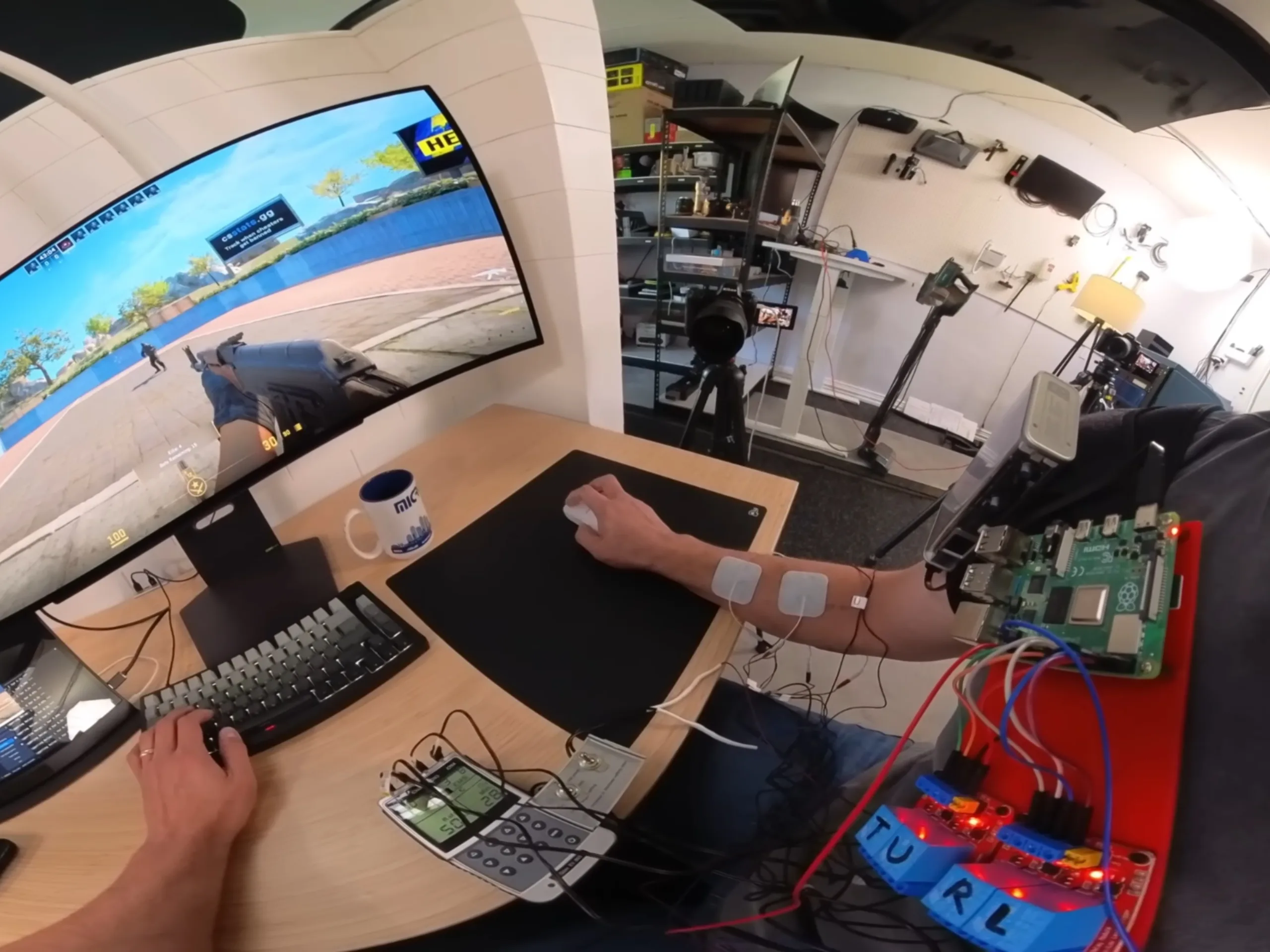 Der US-amerikanische YouTuber Basically Homeless hat in einem Video vom 11. August 2025 ein selbstgebautes „Neuromuskuläres Aim-Assist“-System vorgestellt – quasi ein Elektroschocker, der der beim Zielen hilft. Neben einer gehörigen Portion Mut nutzt der YouTuber dafür eine Mischung aus Computer Vision und Elektrostimulation. Die Elektroden kontrahieren gezielt Muskeln, sodass die Hand in Millisekunden zum Ziel schnellt – und bei Bedarf der Zeigefinger automatisch den Schuss auslöst.