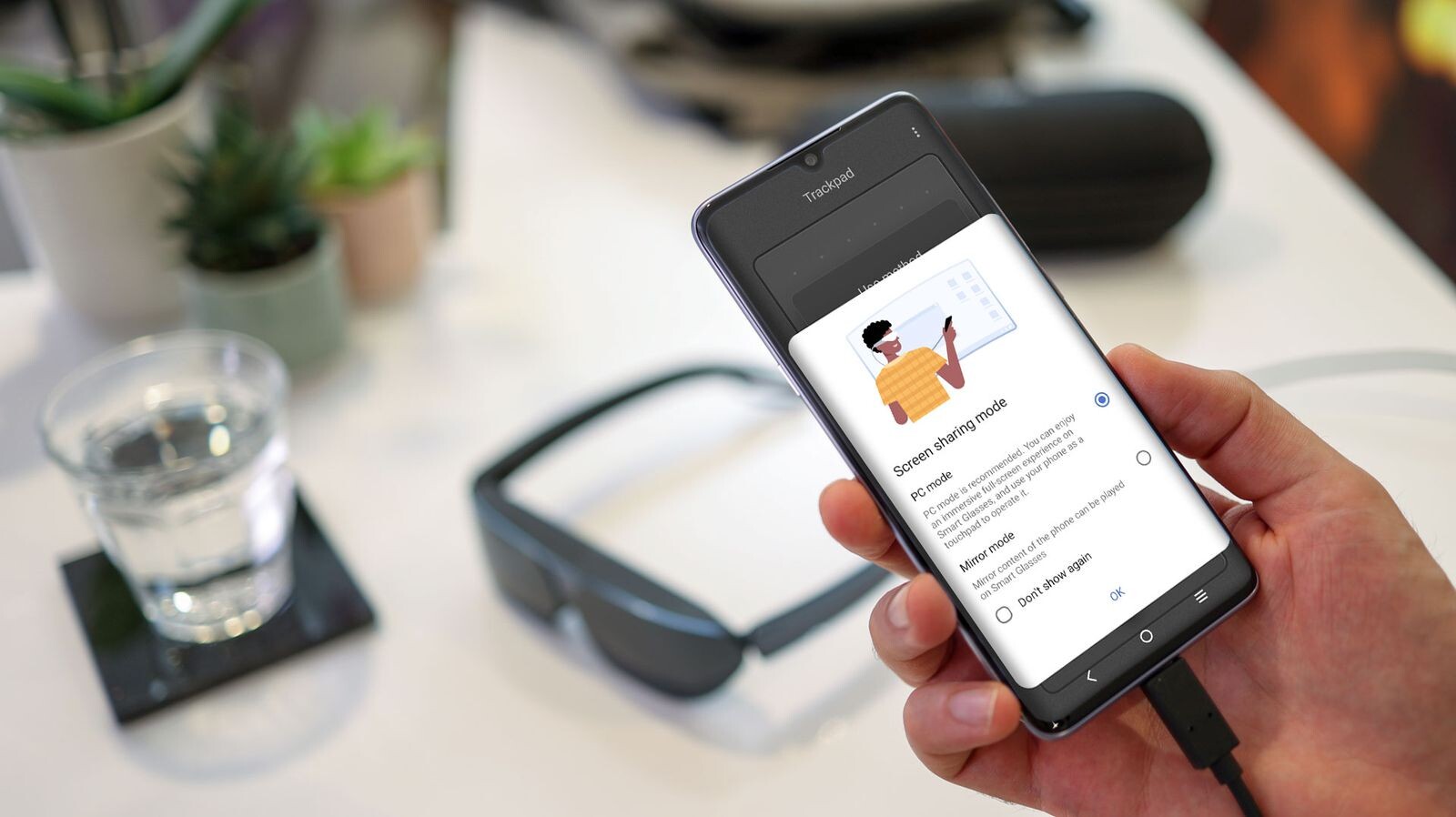 Anders als bei den meisten Videobrillen gibt es dann aber doch ein paar Sensoren, inklusive einem Gyroskop, einem Kompass und einem Annäherungssensor. Das offene Design ermöglicht es außerdem, die Umgebung wahrzunehmen, sodass man beispielsweise die Smartphone-Tastatur bedienen kann, ohne die NxtWear G abnehmen zu müssen. Über die zugehörige App kann das Smartphone auch als Touchpad fungieren, um Apps zu bedienen, während man die Brille benutzt.