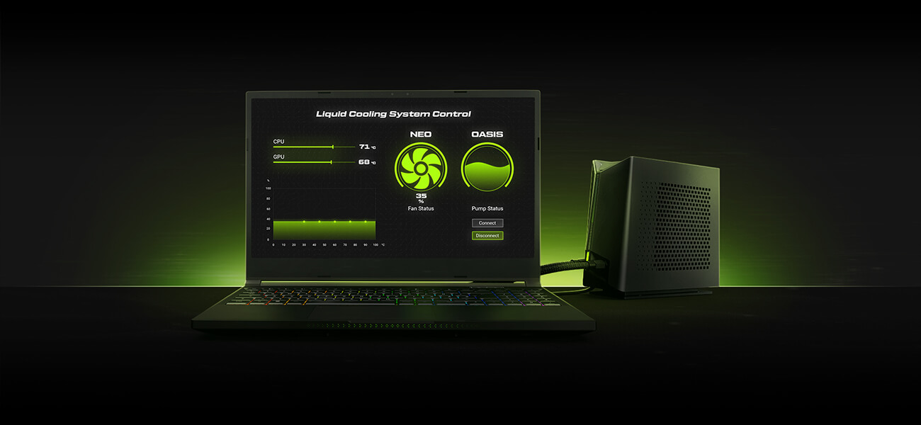 XMG bietet die Oasis Wasserkühlung für Laptops schon seit Anfang des Jahres an, mittlerweile ist diese sowohl mit dem XMG Core als auch mit dem XMG Neo Gaming-Notebook kompatibel. Unser ausführlicher Test hat bereits gezeigt, dass die Wasserkühlung sowohl die Lüfter-Lautstärke als auch die Temperaturen extrem reduzieren kann, was potenziell die Lebensdauer des Laptops erhöht.