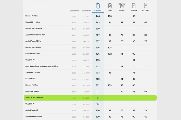 Diese Ausstattung reicht, um es in der DxOMark-Bestenliste auf Platz 14 zu schaffen – damit landet das Kamera-Flaggschiff von Vivo zwei Plätze vor dem teureren Apple iPhone 13 und dem iPhone 13 mini (ca. 780 Euro auf Amazon), auch wenn der Vorsprung nur einen Punkt beträgt. Das Gerät liegt damit in etwa auf Augenhöhe mit dem Huawei P40 Pro und dem Google Pixel 6.