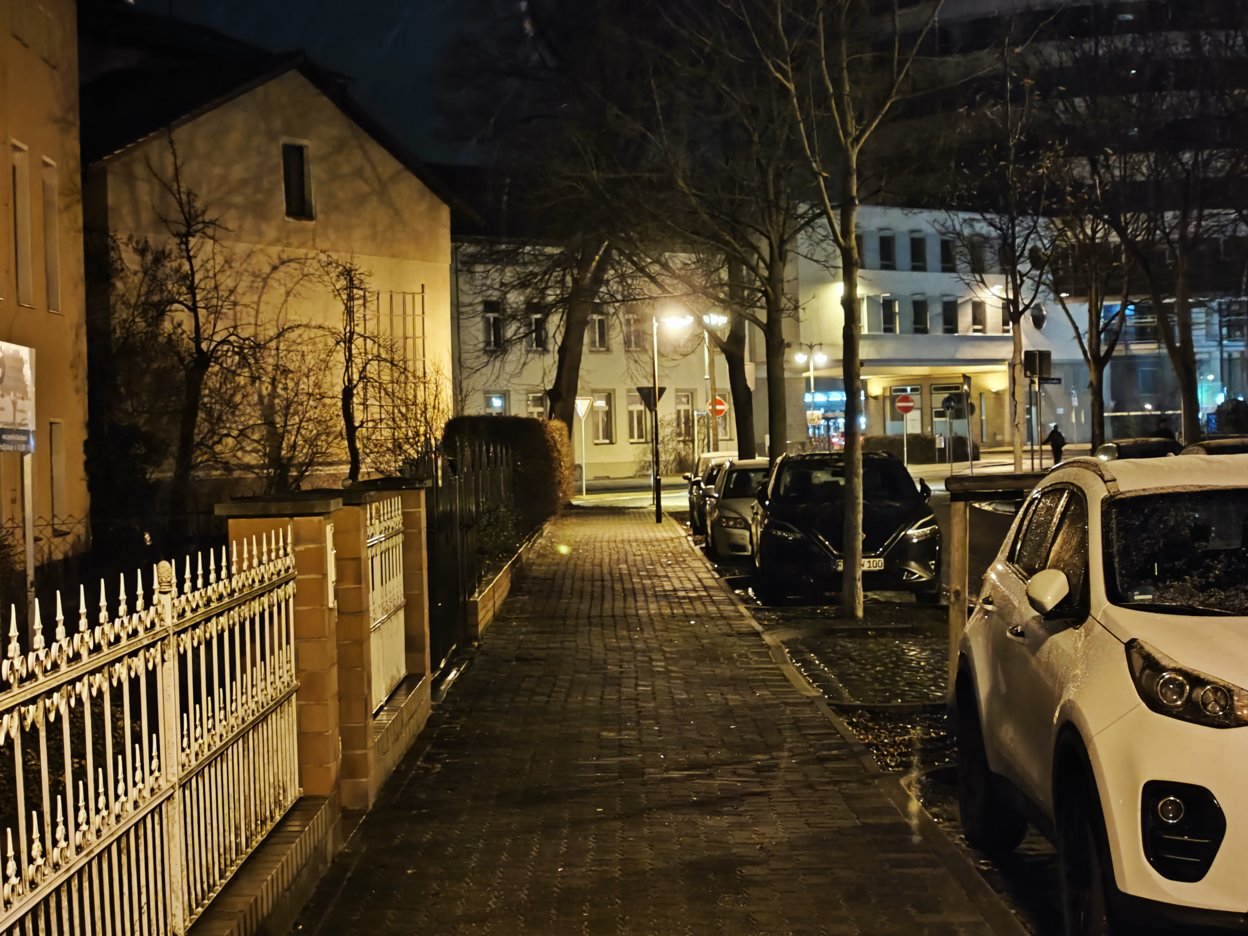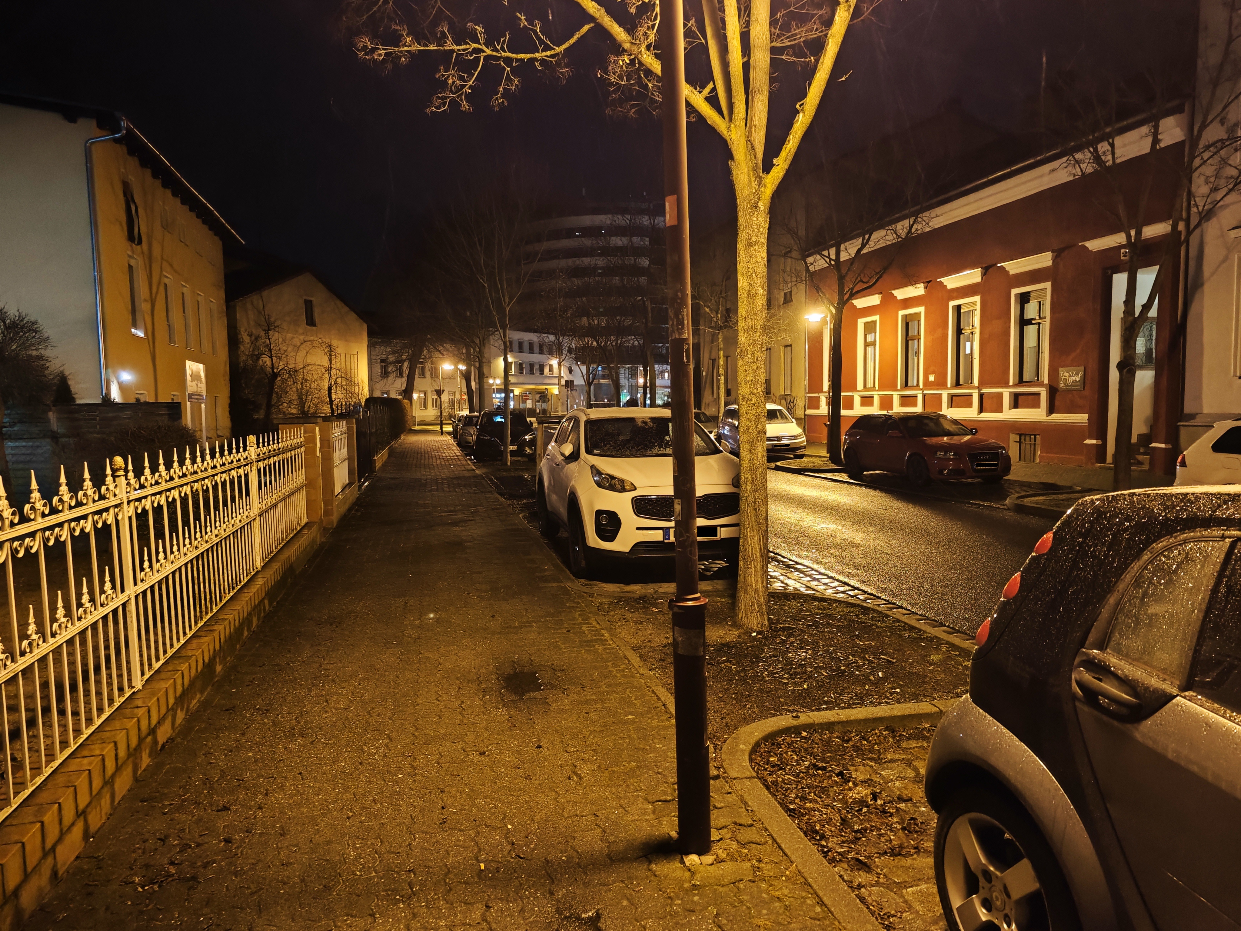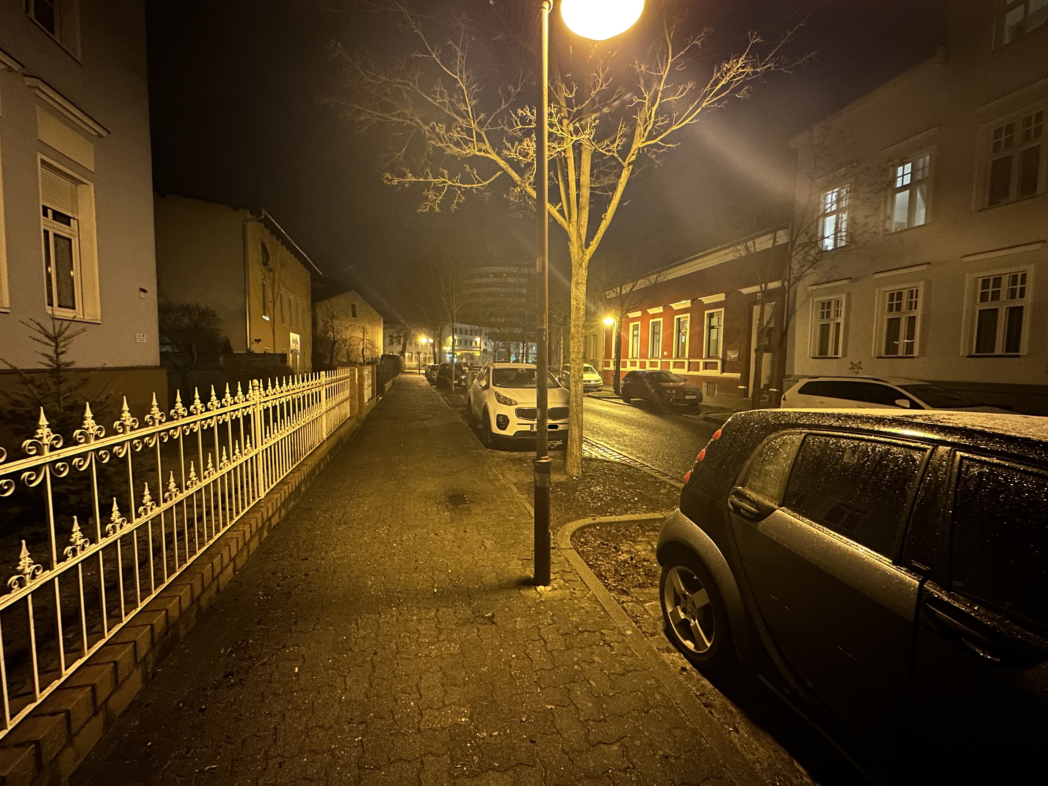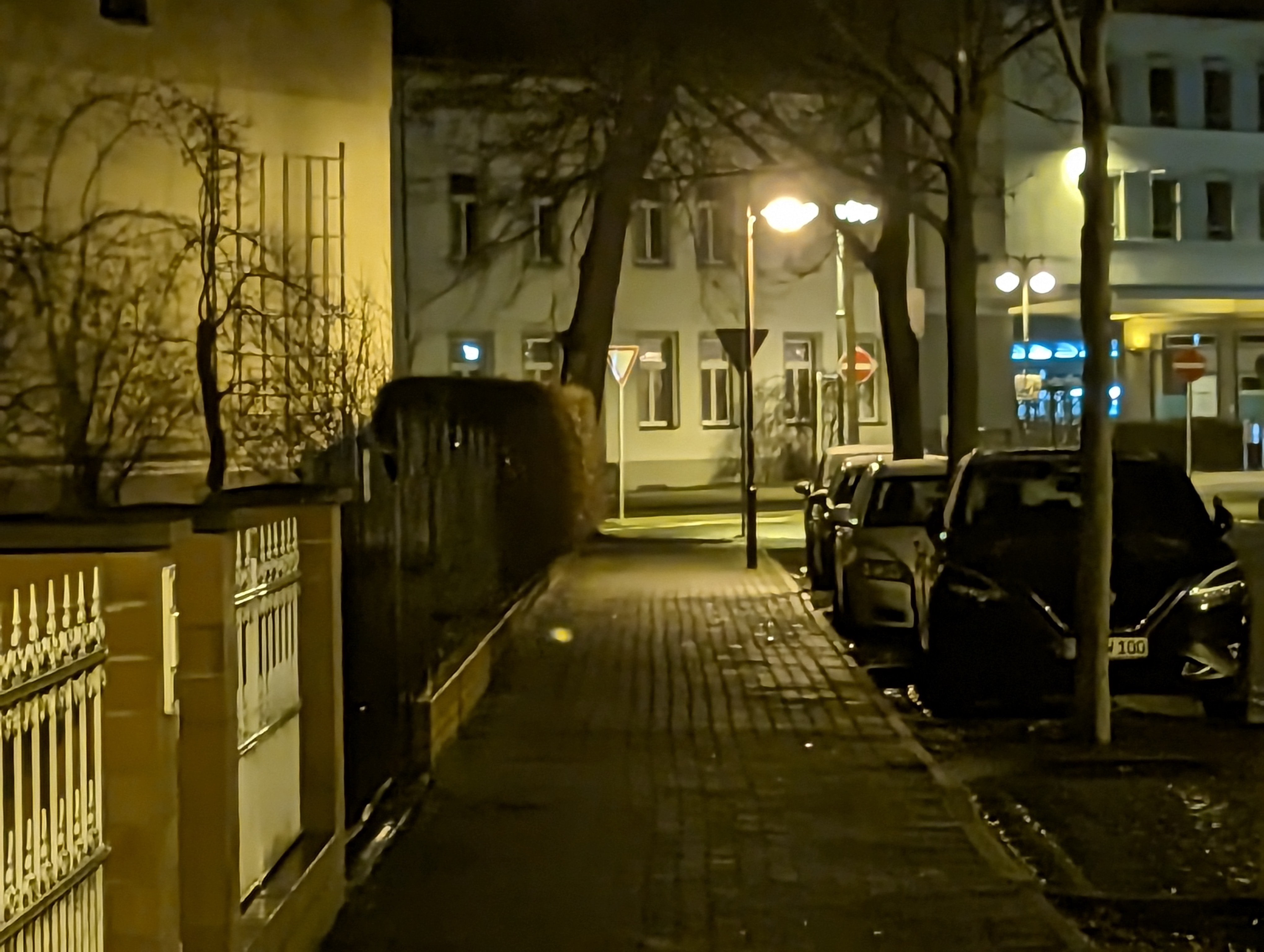 Bei wenig Licht rückt das Samsung Galaxy S23 Ultra näher an die Kamera-Elite heran, allerdings passen die Farben in unserem Straßenmotiv nicht wirklich. Am besten gefällt uns hier das Xiaomi 13 Pro – es fängt die Licht- und Schattenbereiche sehr authentisch ein. Im Gegensatz zu den aufgehellten Aufnahmen der Konkurrenz setzt das Xiaomi-Handy auf starke Kontraste, was uns sehr gut gefällt. Aber auch das iPhone 14 Pro macht in dieser Disziplin einen guten Job. Auch wenn Lens Flare-Artefakte im Bereich der Straßenlaternen sichtbar wird.