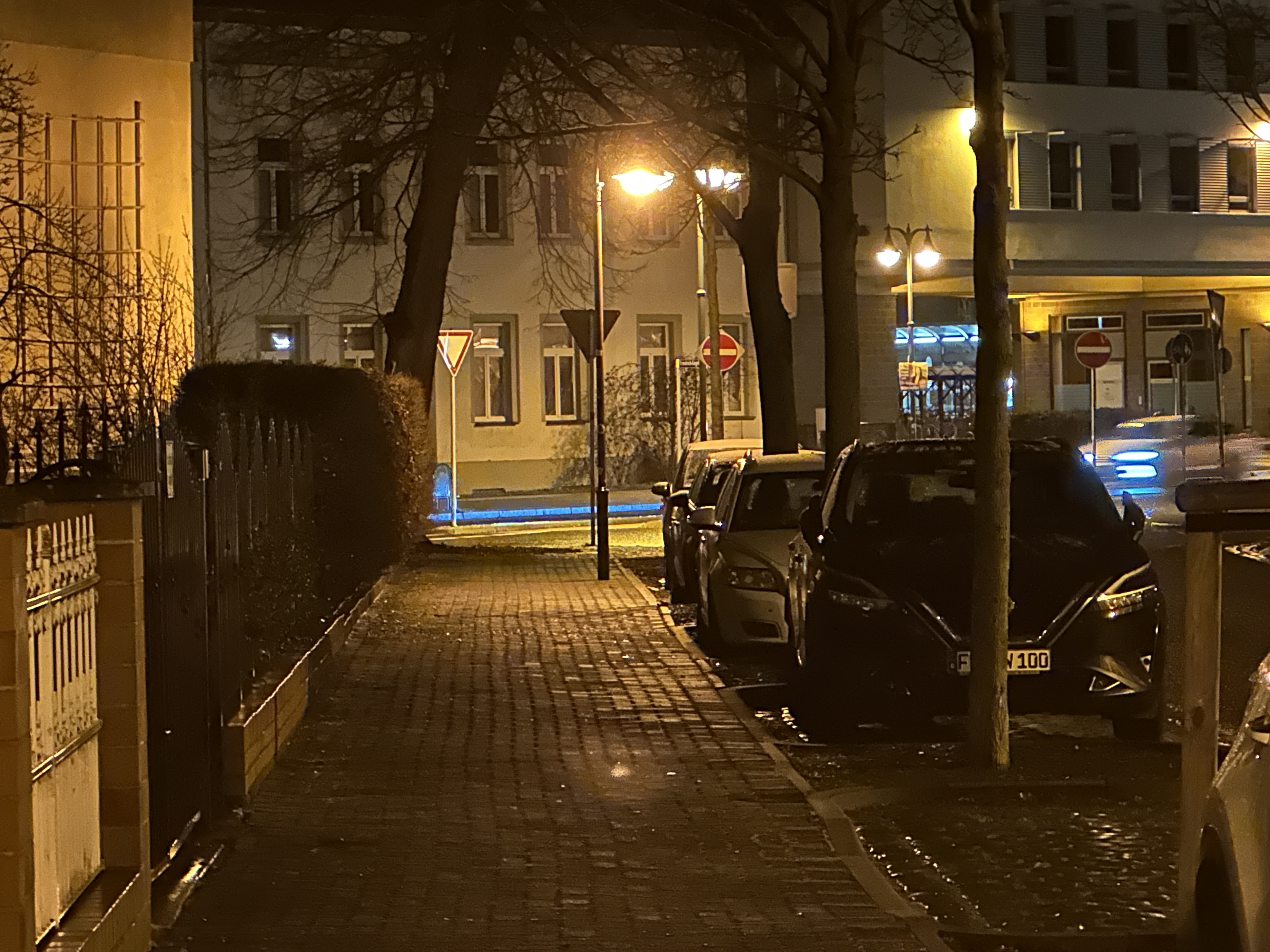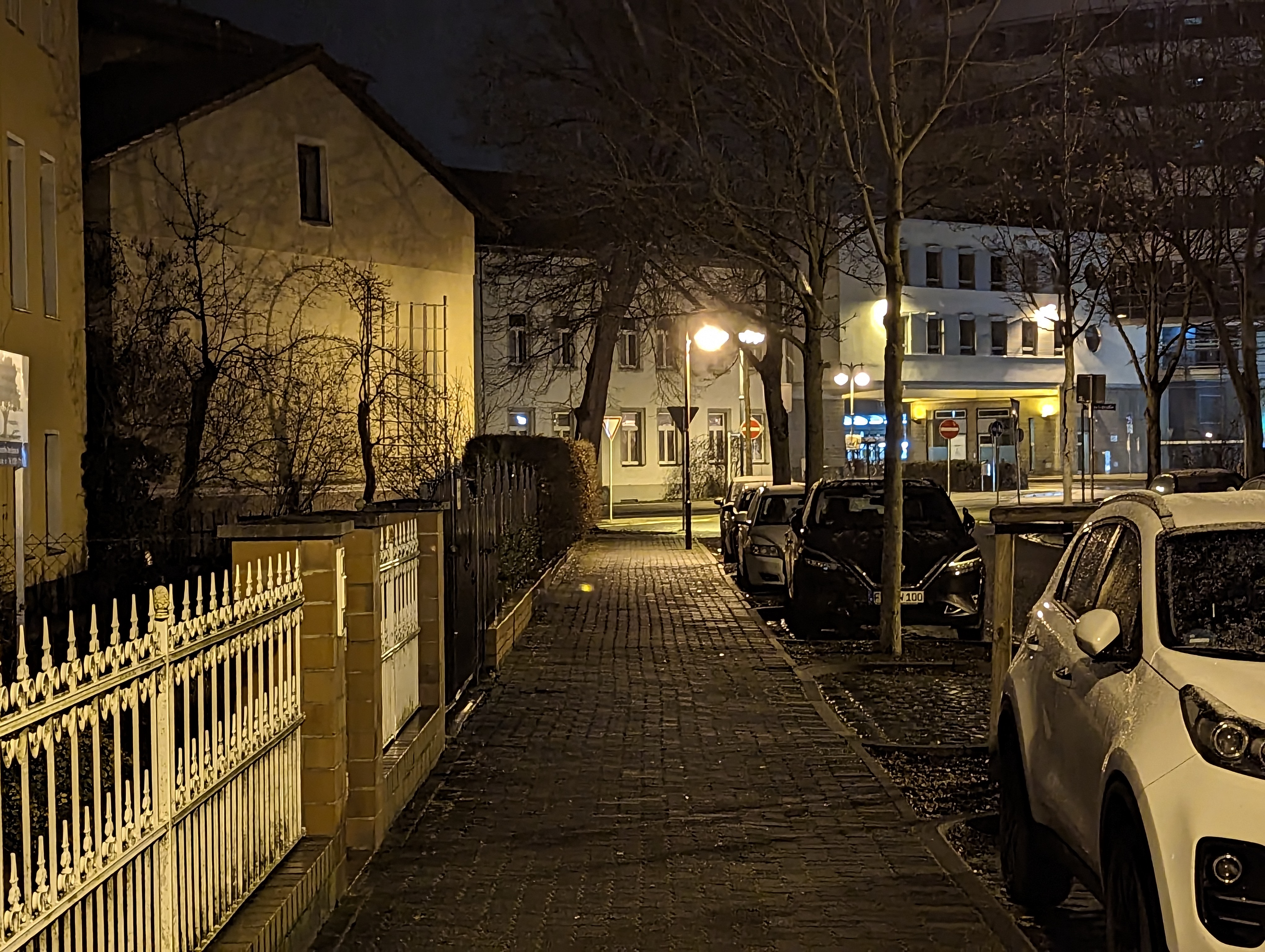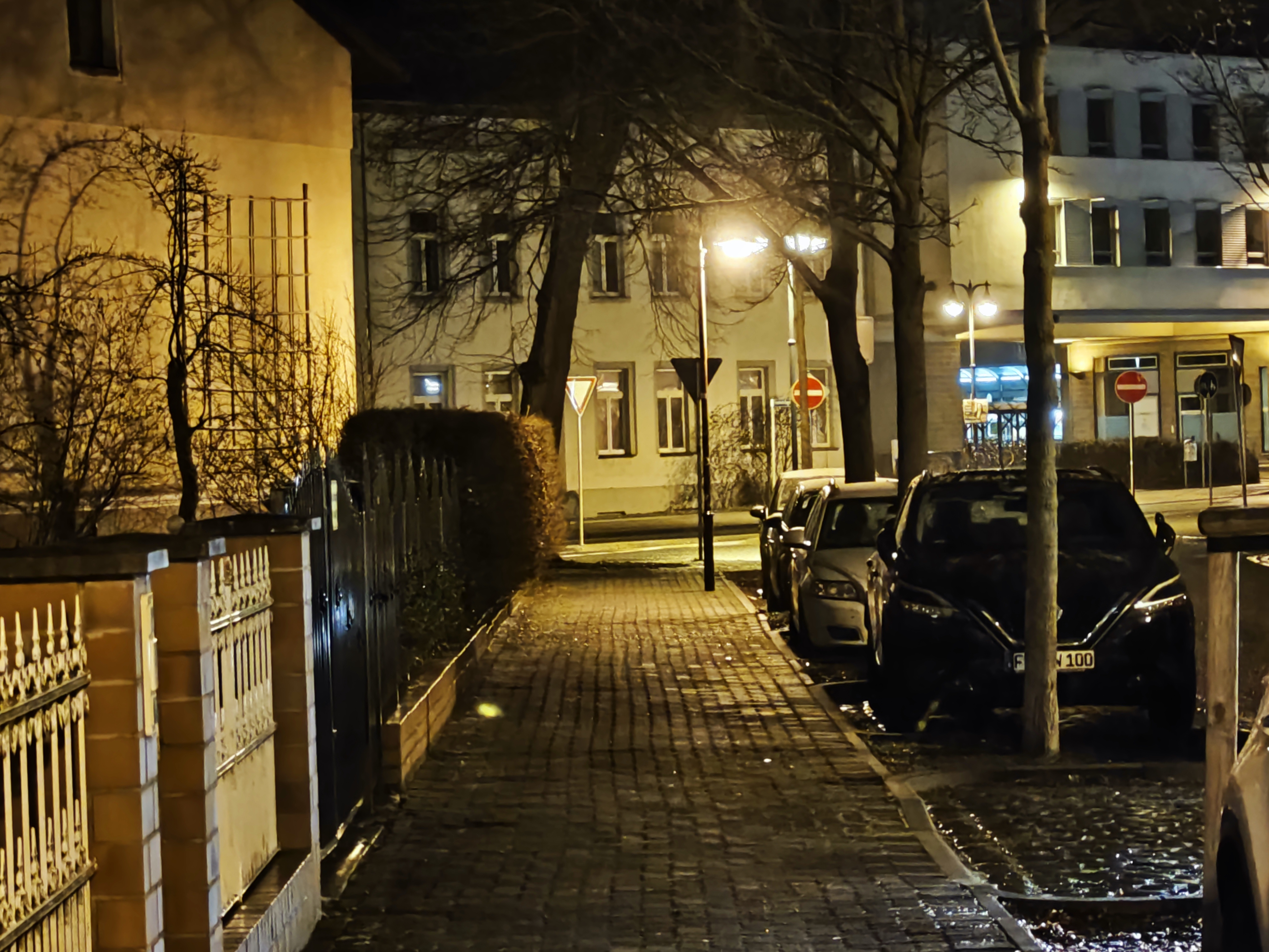 Bei wenig Licht rückt das Samsung Galaxy S23 Ultra näher an die Kamera-Elite heran, allerdings passen die Farben in unserem Straßenmotiv nicht wirklich. Am besten gefällt uns hier das Xiaomi 13 Pro – es fängt die Licht- und Schattenbereiche sehr authentisch ein. Im Gegensatz zu den aufgehellten Aufnahmen der Konkurrenz setzt das Xiaomi-Handy auf starke Kontraste, was uns sehr gut gefällt. Aber auch das iPhone 14 Pro macht in dieser Disziplin einen guten Job. Auch wenn Lens Flare-Artefakte im Bereich der Straßenlaternen sichtbar wird.
