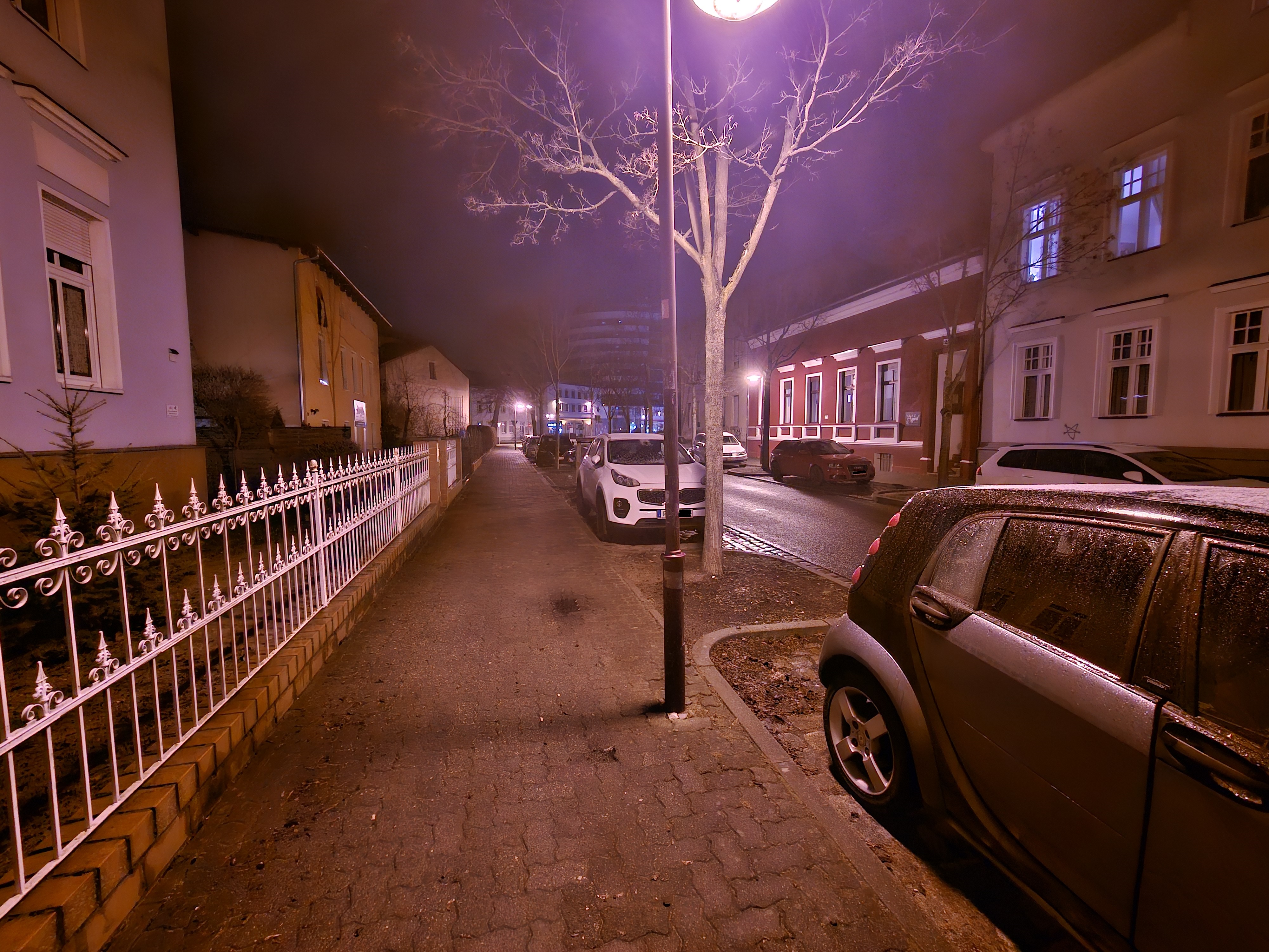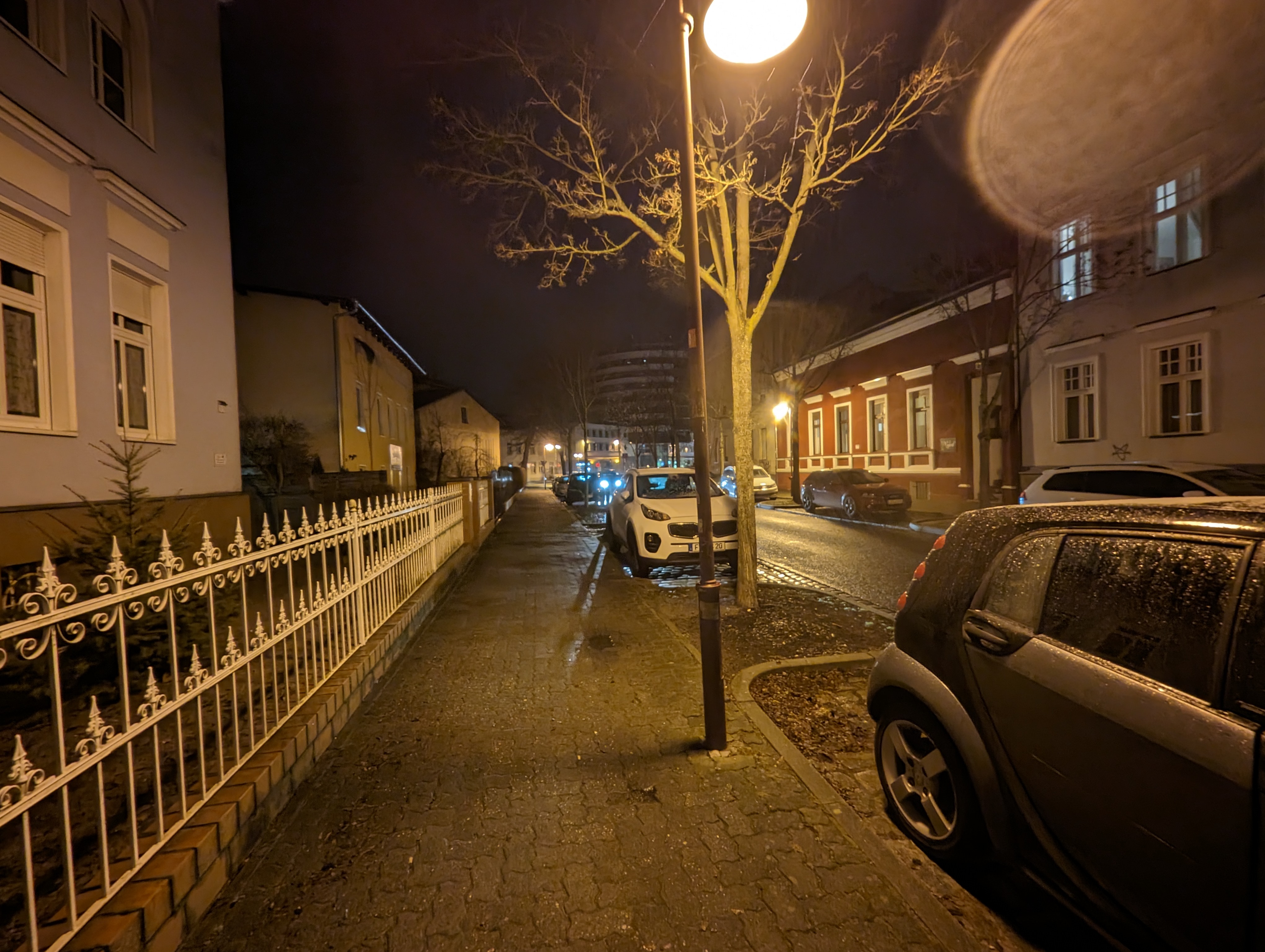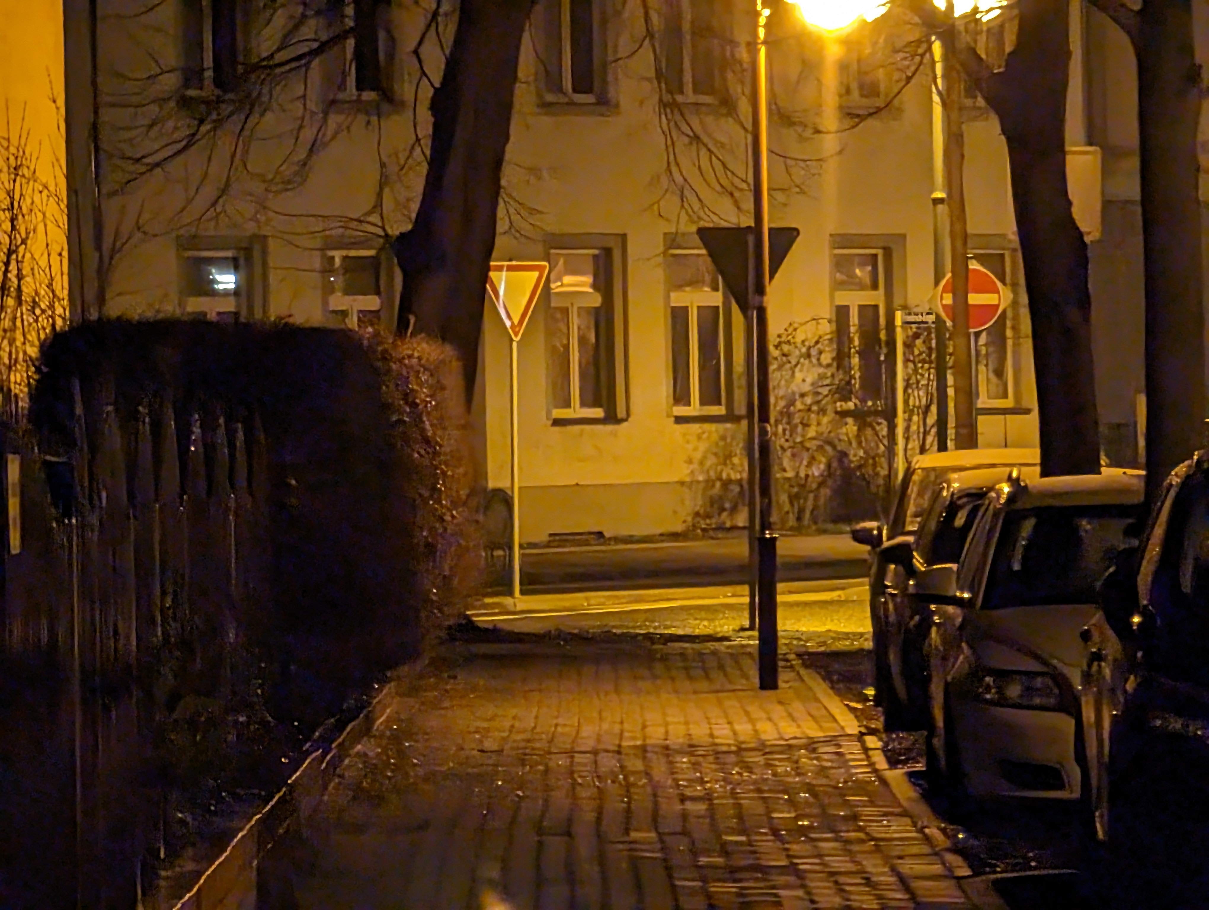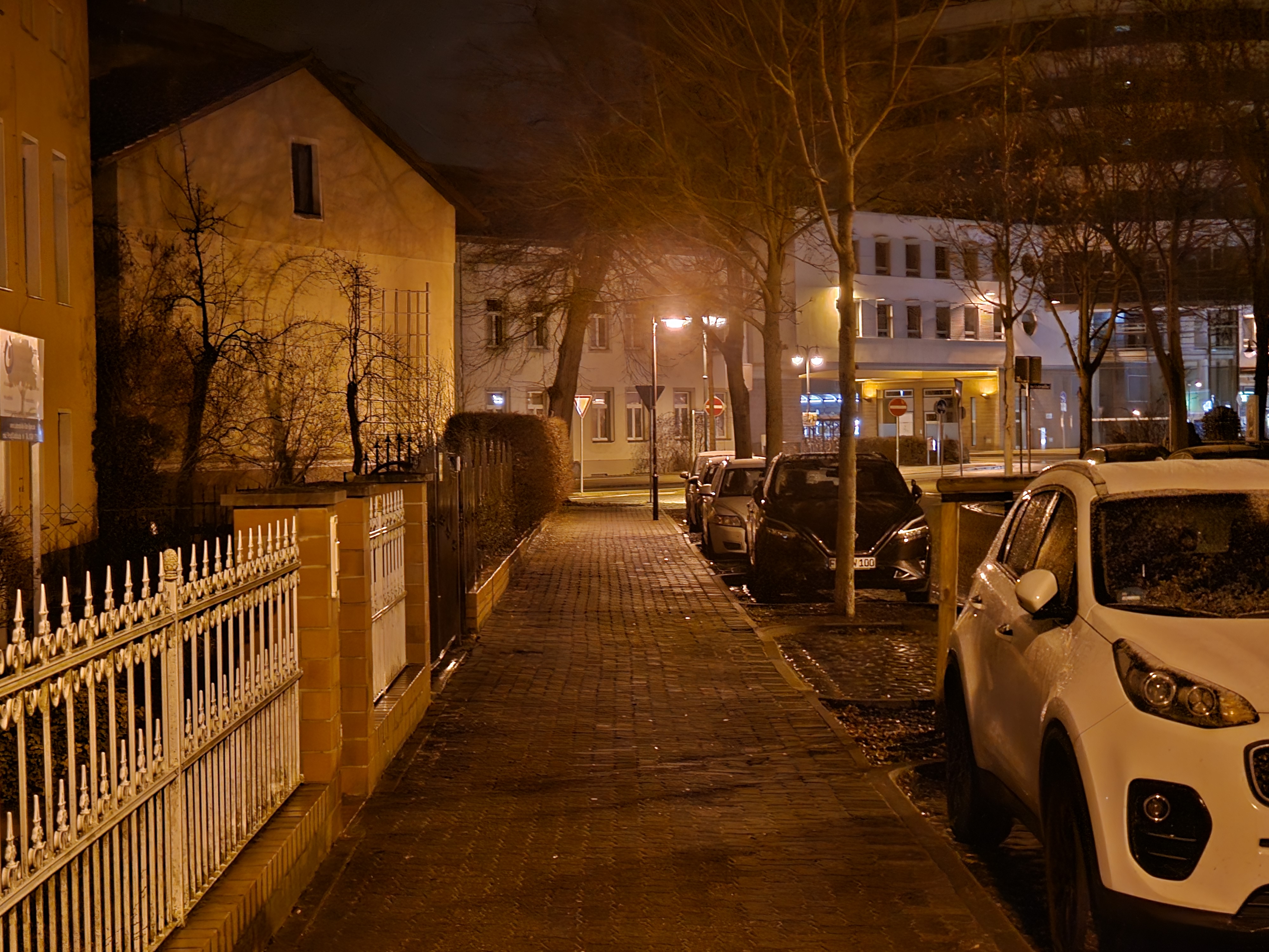 Bei wenig Licht rückt das Samsung Galaxy S23 Ultra näher an die Kamera-Elite heran, allerdings passen die Farben in unserem Straßenmotiv nicht wirklich. Am besten gefällt uns hier das Xiaomi 13 Pro – es fängt die Licht- und Schattenbereiche sehr authentisch ein. Im Gegensatz zu den aufgehellten Aufnahmen der Konkurrenz setzt das Xiaomi-Handy auf starke Kontraste, was uns sehr gut gefällt. Aber auch das iPhone 14 Pro macht in dieser Disziplin einen guten Job. Auch wenn Lens Flare-Artefakte im Bereich der Straßenlaternen sichtbar wird.