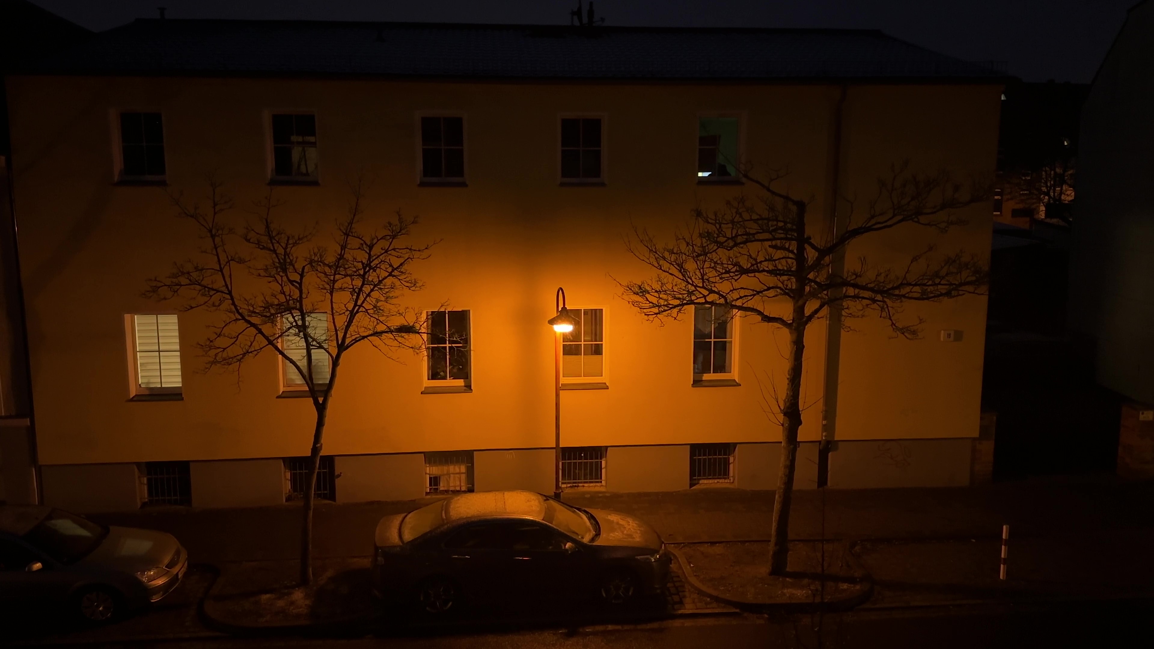 Die Licht- und Farbstimmung des Straßenmotives fängt das Galaxy S23 Ultra sehr gut ein. Insbesondere beim Blick auf die Rollos offenbaren sich die Defizite eines iPhone 14 Pro Max oder Xiaomi 13 Pro, welche einen rötlichen Farbstich aufweisen. Interessanterweise entsprechen die Farben des Hauses, welches das Pixel 7 Pro darstellt, denen bei Tageslicht. Hier rechnet Google den Einfluss des Straßenlichtes gänzlich heraus, jedoch zeigt das Pixel Handy etwas mehr Bildrauschen als die Konkurrenz.