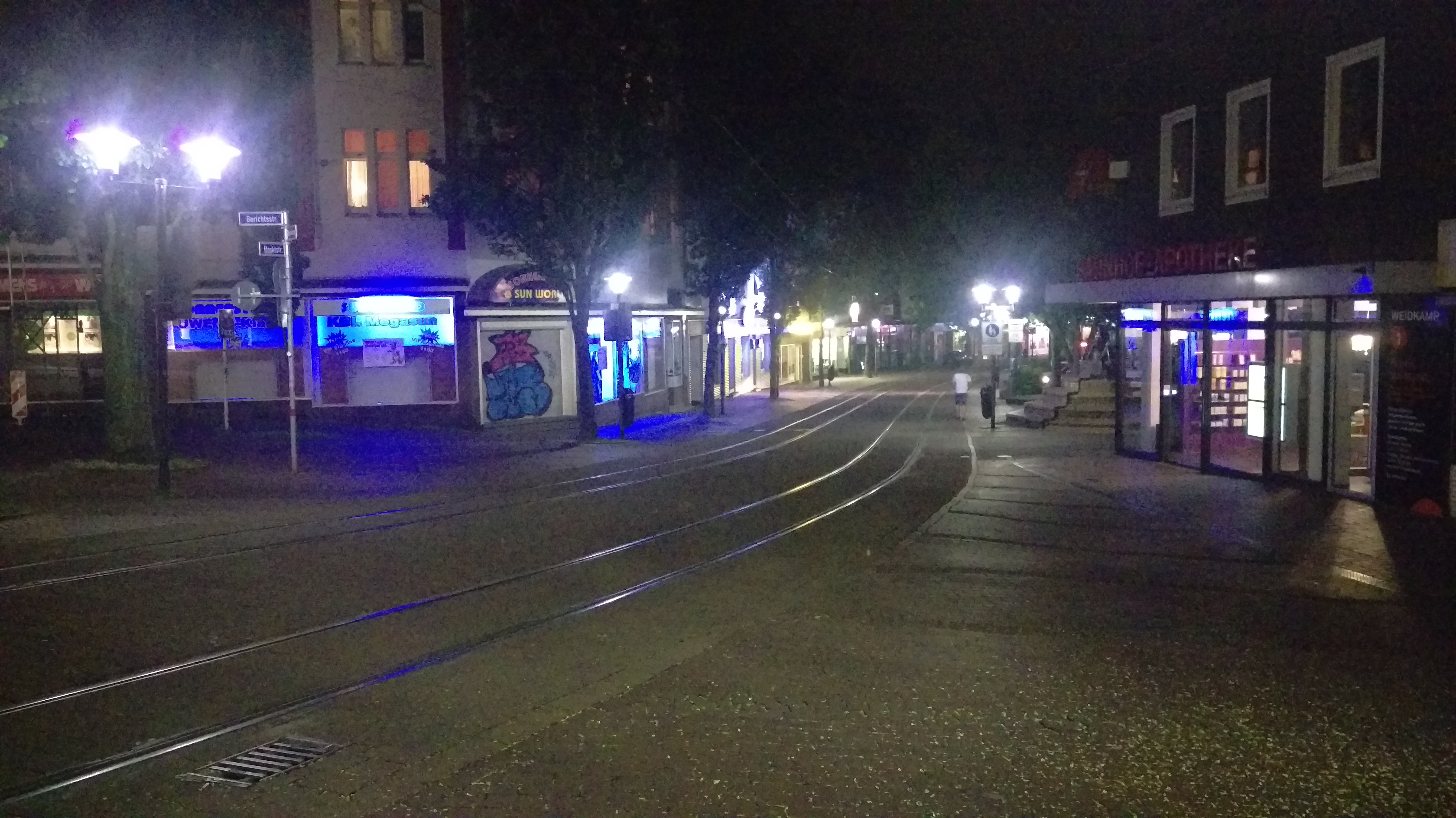Schwaches Umgebungslicht (Low Light) stellt für jede Kamera eine Herausforderung dar. Dies gilt aufgrund der kleinen Sensoren vor allem auch für Kompaktkameras und Smartphones. Obwohl letztere in diesem Bereich immer besser werden. Bei den Aufnahmen in diesem Szenario ist der Blitz bei allen Geräten deaktiviert, sodass die Smartphones mit dem verfügbaren Restlicht (Available Light) auskommen müssen. Zum Zeitpunkt der Aufnahmen war es bereits Nacht und auch hier ist zu beachten, dass alle Bilder vom gleichen Standpunkt aus aufgenommen wurden, es aufgrund der unterschiedlichen Formate, Auflösungen und Brennweiten aber zu verschiedenen Bildausschnitten kommen kann.