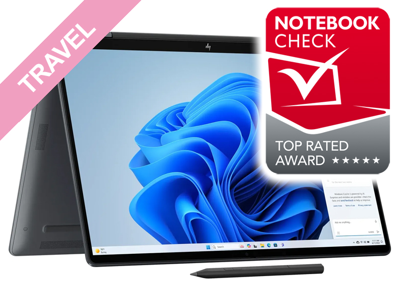 Ein spannendes ultramobiles Paket mit neuester Technik stellt HP mit dem OmniBook Ultra Flip 14 (zum Test) zusammen. Das Notebook mit 14-Zoll-Display verfügt über ein 360-Grad-Scharnier und erlaubt damit eine Reihe von Einsatzszenarien (etwa Tablet- oder Tent-Modus), die ein klassisches Clamshell-Design nicht ermöglicht. Intels neuste Luna-Lake-CPU sorgt für sehr gute Grafik- und Anwendungsleistung und bietet dank verbesserter Effizienz dennoch eine Akkulaufzeit von rund 14 Stunden im praxisnahen Einsatz (WiFi-Surfen). Das OLED-Display unterstützt eine Stifteingabe und ist dank 120-Hz Refresh-Rate auch knackig schnell. Verfügbar sind verschiedene Kombinationen von CPU, RAM und SSD-Größen, die Preise starten bei rund 1.600 Euro.