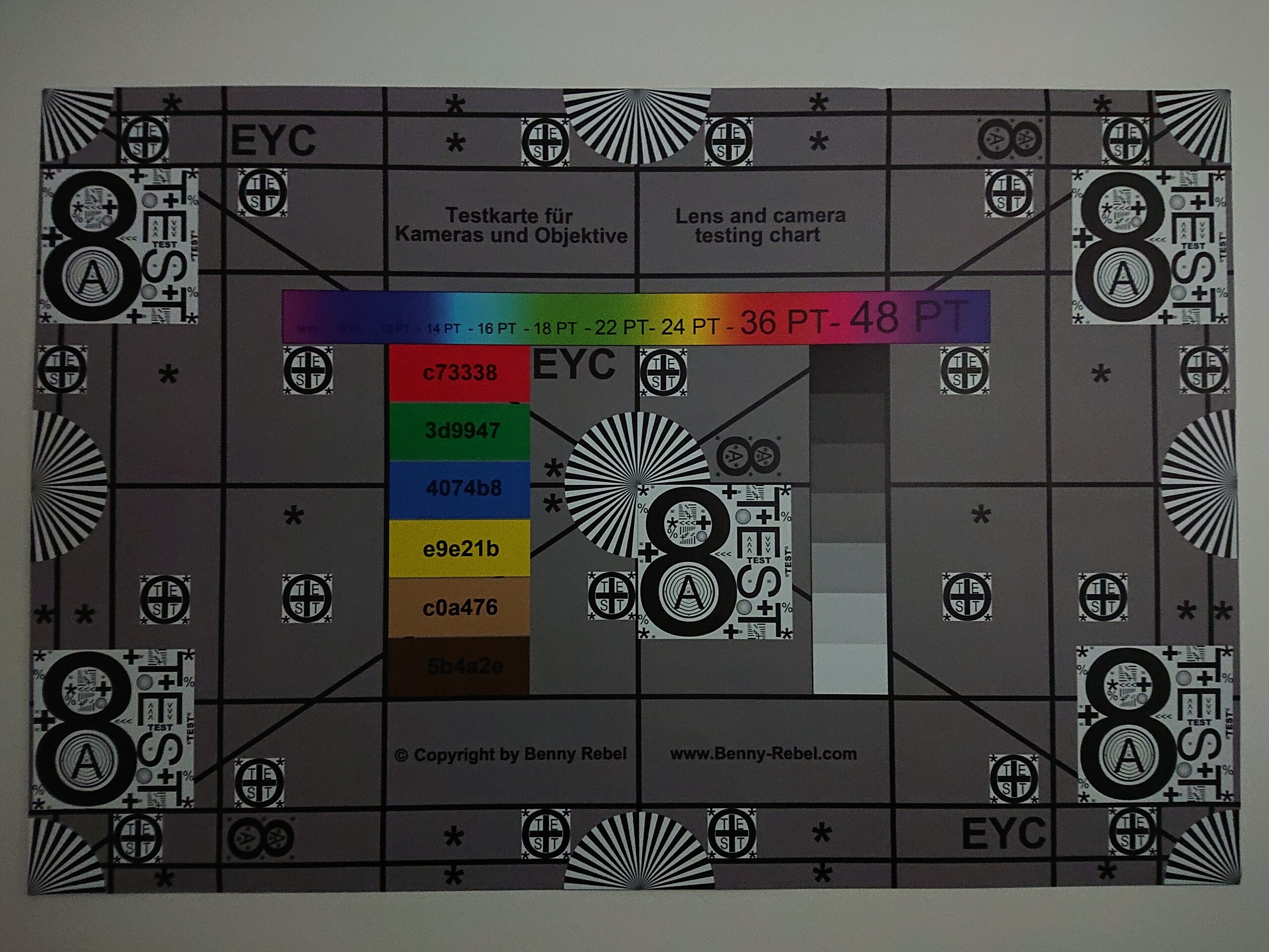 Eine wirklich tolle Ablichtung gelingt in diesem Szenario keinem der Kontrahenten. In der Bildmitte gefallen uns die Smartphones 1 bis 3 sowie 8 am besten. Nummer 2 hellt sehr gut auf und behält dennoch eine gute Linienführung bei, hat jedoch mit etwas zu blassen Farben zu kämpfen. Ein Problem, welches auch Nummer 1 und 8 besitzen. 3 und 8 bilden das Motiv sichtbar dunkler ab, aber bei Nummer 3 bleiben Farben dennoch gut erhalten und kräftig. Nummer 6 lichtet das Testchart überraschend hell ab, aber besitzt eine sehr unruhige Linienführung und Flächen weisen zahlreiche Fragmente auf.