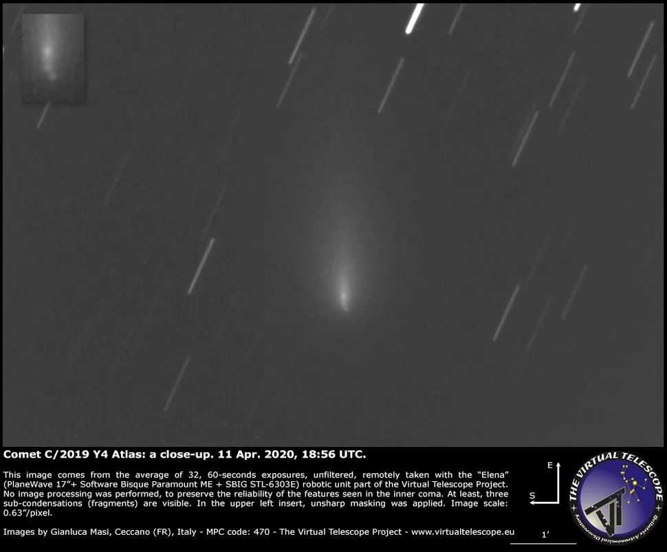 Im Jahr 2020 haben Astronomen den Kometen C/2019 Y4 (ATLAS) entdeckt und gingen damals davon aus, dass er ein außergewöhnliches und von der Erde aus sichtbares Spektakel bieten würde. Stattdessen zerbrach der Komet in mehrere Teile, und einige Astronomen halten es für möglich, dass sich manche dieser Fragmente noch in unserem Sonnensystem befinden.