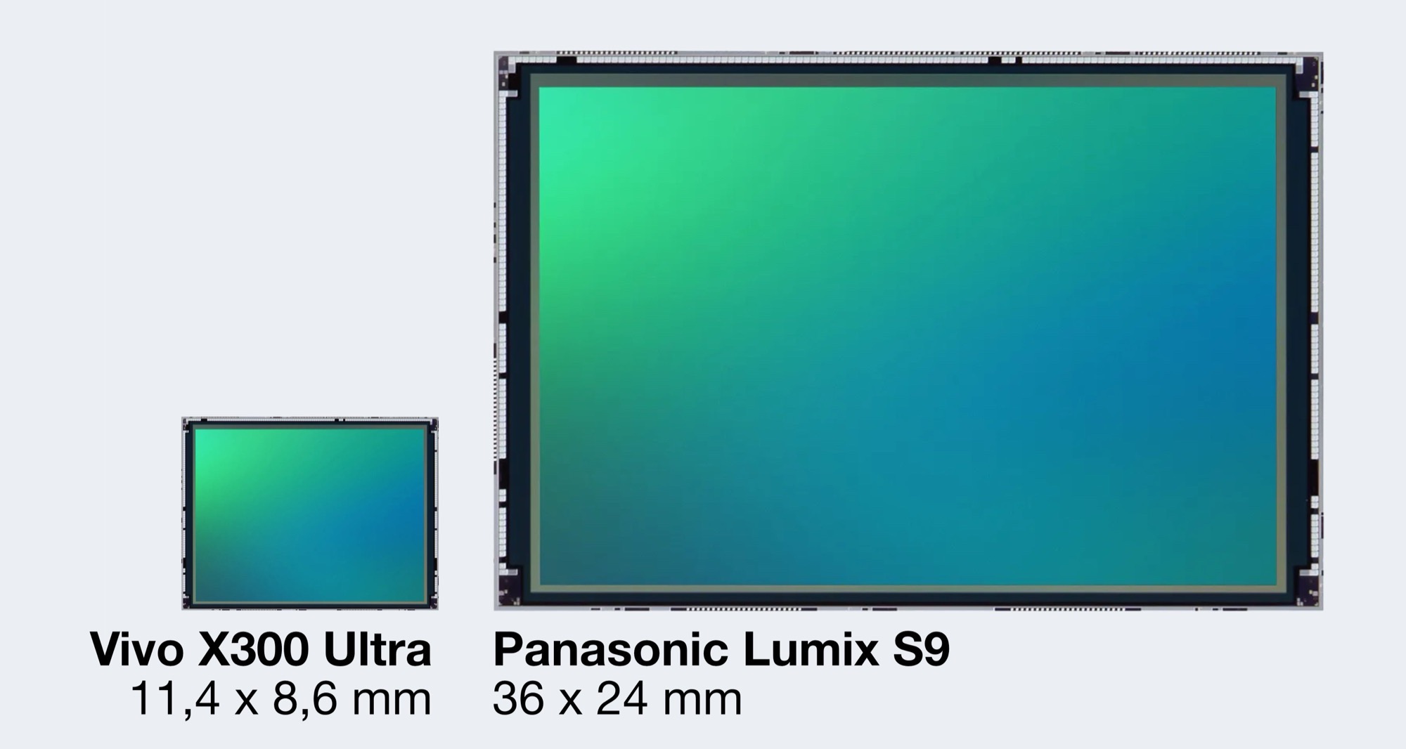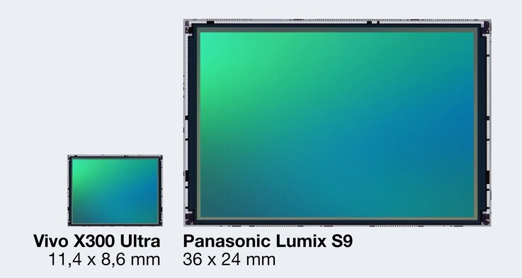 Für diesen Preis bietet Vivo eine 200 Megapixel f/1.9 Hauptkamera mit 1/1,12 Zoll Sensor, eine 200 MP f/2.7 Periskop-Tele-Kamera mit 1/1,4 Zoll Sensor und eine 50 MP f/2.0 Ultraweitwinkel-Kamera mit 1/1,28 Zoll Sensor. Auch wenn Vivo damit für Smartphone-Verhältnisse relativ große Sensoren verbaut, ist ein Vollformat-Sensor etwa neunmal so groß wie der 1/1,12 Zoll Sensor der Hauptkamera des Vivo X300 Ultra, wie ein Größenvergleich zeigt.