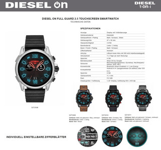 Die neue Diesel On Full Guard 2.5 Smartwatch wird in vier unterschiedlichen Ausführungen angeboten. Je nach Full-Guard-Modell kosten die neuen Diesel-Uhren zwischen 350 und 370 Euro. Alle Varianten der Diesel On Full Guard 2.5 Smartwatch besitzen ein Edelstahlgehäuse. Unterschiede gibt es bei Farbe und Uhrbändern: