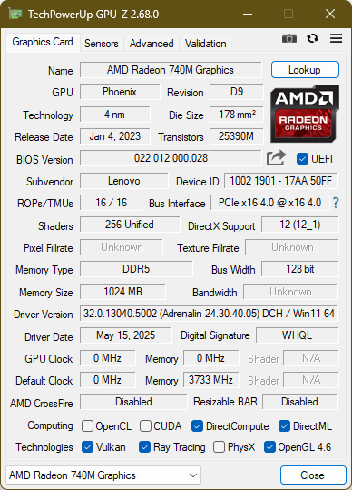 | Lenovo ThinkPad L16 Gen 2 21SC0029GE R5 PRO 215, Radeon 740M, Kioxia BG6 KBG6AZNV512G, LED IPS, 1920x1200, 16" | Lenovo ThinkPad L16 Gen 1 21L70010GE R7 PRO 7735U, Radeon 680M, SK Hynix HFS001TEJ9X164N, IPS, 1920x1200, 16" | HP EliteBook 8 G1a 16 AI Ryzen AI 7 PRO 350, Radeon 860M, Micron 3500 MTFDKBA512TGD, IPS, 1920x1200, 16" | Lenovo ThinkPad T16 Gen 4 21QQS06M00 Ryzen AI 7 PRO 350, Radeon 860M, SK hynix PC801 HFS001TEJ9X162N, IPS, 1920x1200, 16" | Lenovo ThinkBook 16 G7 QOY 21NH0005GE SD X Plus X1P-42-100, Adreno X1-45 1.7 TFLOPS, WD PC SN740 512GB SDDPMQD-512G-1101, IPS LED, 1920x1200, 16" | Durchschnittliche AMD Radeon 740M | Durchschnitt der Klasse Office | |