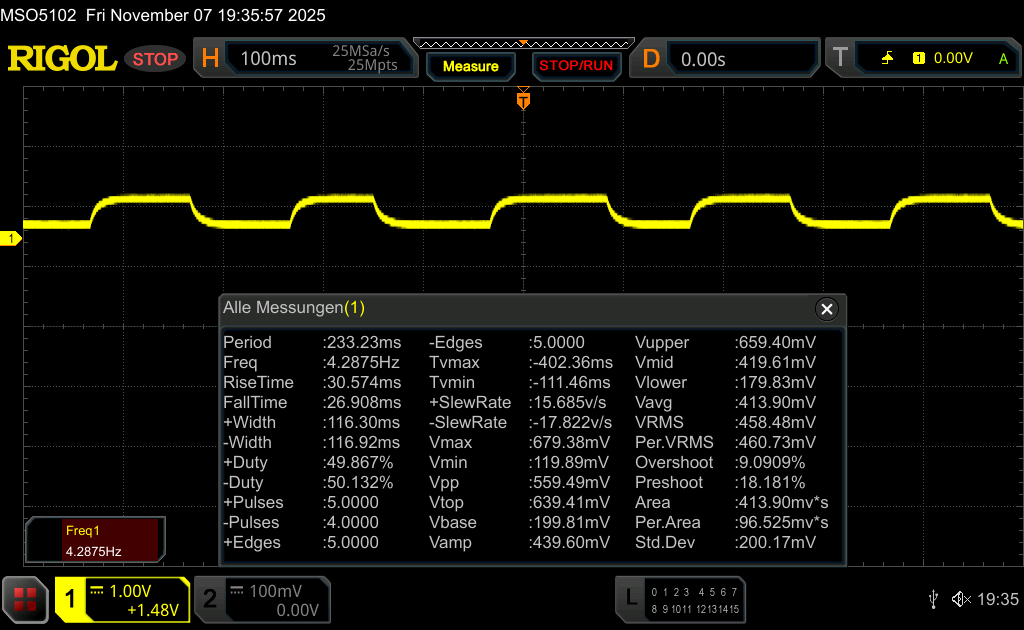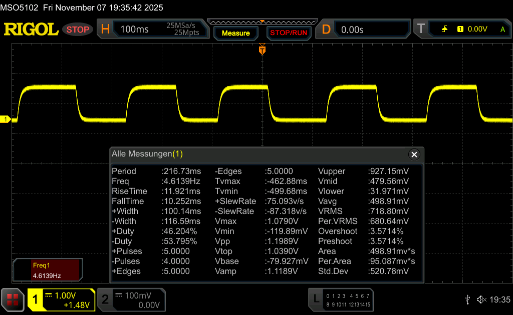 | 22.1 ms ... steigend ↗ und fallend ↘ kombiniert | ↗ 11.9 ms steigend | |