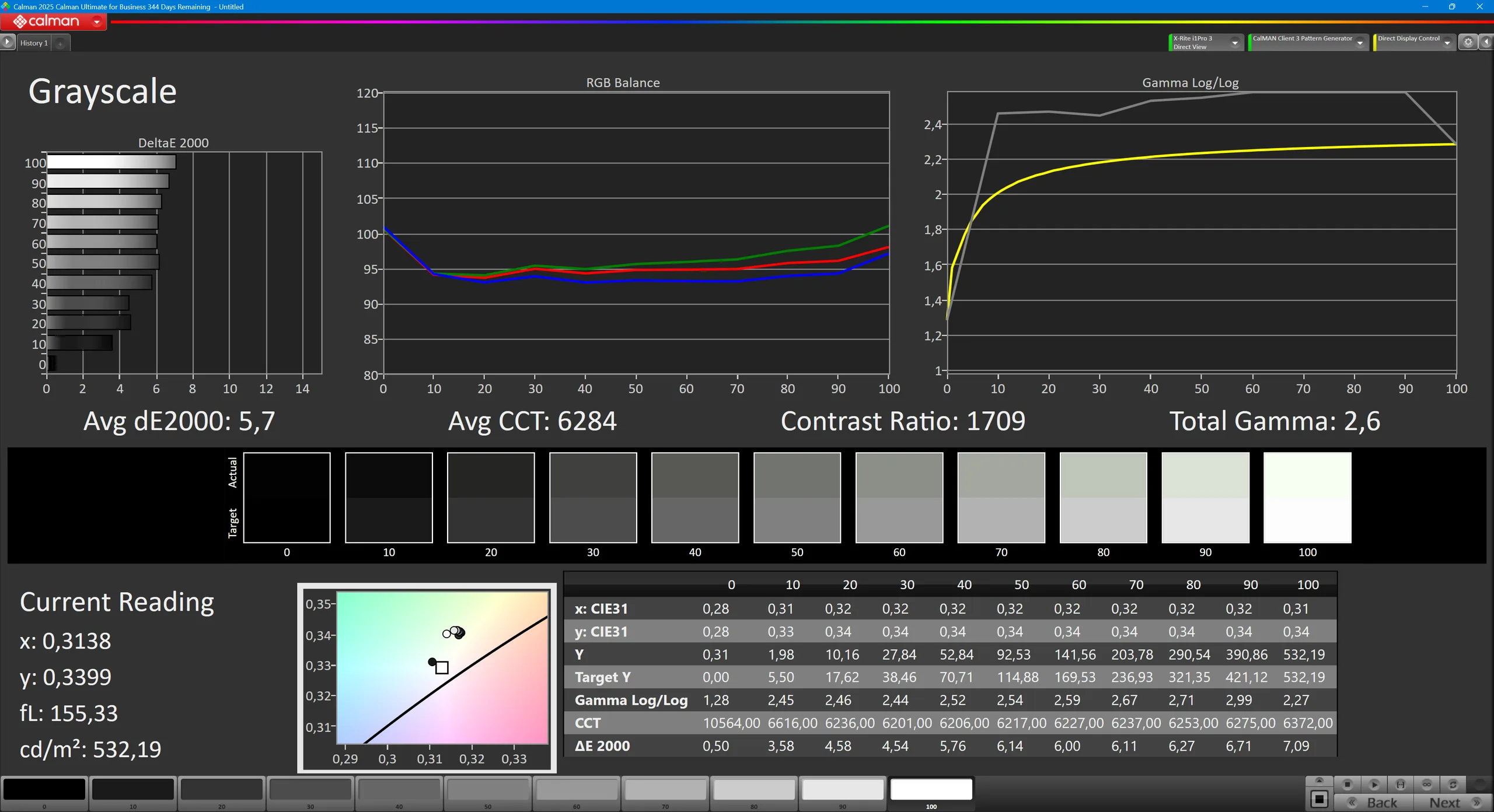 ΔE Greyscale Calman: 5.7 | ∀{0.09-98 Ø4.99}