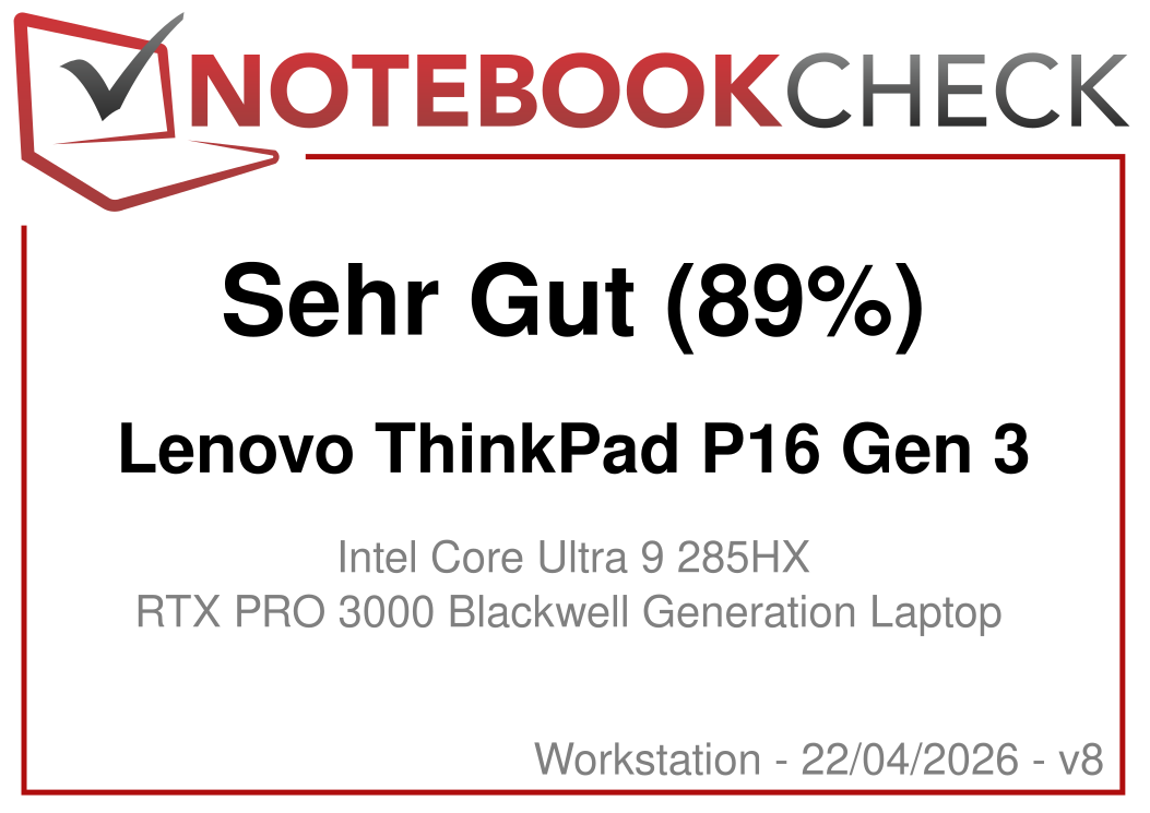 | Lenovo ThinkPad P16 Gen 3 Intel Core Ultra 9 285HX ⎘ NVIDIA RTX PRO 3000 Blackwell Generation Laptop ⎘ 96 GB RAM, 2048 GB SSD | Amazon: 5.039,65 € Bestpreis 4310.4€ high-end-systems 2. 4748.94€ CLS-IT 3. 4952.52€ technik-guenstiger_de | 2.7 kg | 30 mm | 16.00" 1920x1200 142 PPI IPS LED | |
