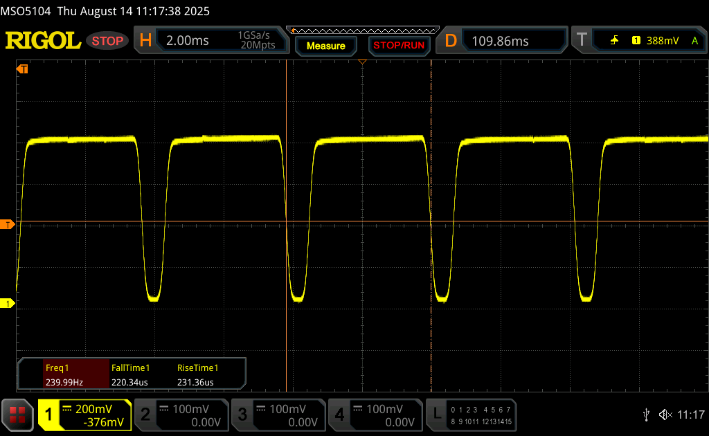 | PWM Frequency (Hz) | 240 ? | 241.1 ? | 480 ? | 473.8 ? | 242.3 ? | |