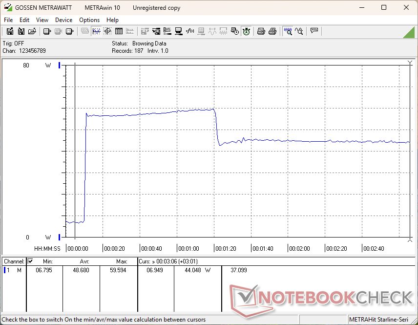 Der Leerlauf auf dem Desktop erfordert 6 W bei der niedrigsten Helligkeitseinstellung und bis zu 16 W bei der hellsten Einstellung mit dem Display im erweiterten Modus. Dieses ist natürlich etwas hungriger als die meisten traditionellen Clamshells und führt im Allgemeinen zu kürzeren Laufzeiten. Ansonsten ist der Verbrauch unter Last ungefähr so, wie man es angesichts der Größe und der effizienten CPU erwartet.