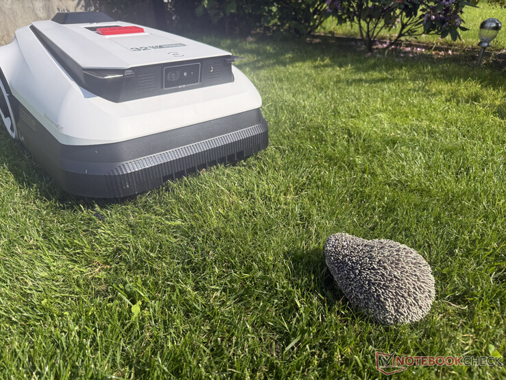 Auf niedrigster Stufe hat er dann die allermeisten Test-Hindernisse erfolgreich erkannt, einschließlich unserer Igel-Attrappe. Selbst ein Stück auf dem Rasen liegender Gartenschlauch wurde erfolgreich umkurvt. Einzig ein neongelber Tennisball auf grünem Rasen hat den drahtlosen Mähroboter an seine Grenzen gebracht. Reicht nicht ganz für die Bestnote, ist aber insgesamt ein gutes Ergebnis.
