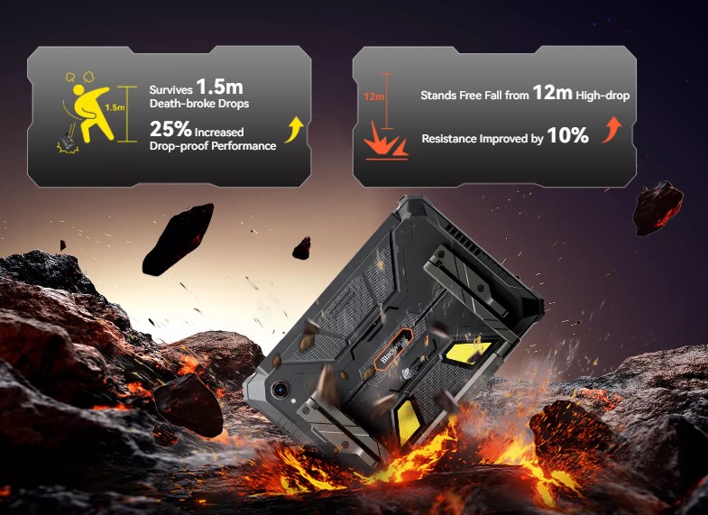 Das Tablet kommt immer mit einem MediaTek Dimensity 7300 und damit einem SoC mit eingebautem 5G-Mobilfunkmodem, dabei ist der Betrieb mit zwei SIM-Karten möglich, wenn denn auf die Erweiterung des internen Speichers mithilfe einer microSD-Karte verzichtet wird. Das Tablet bringt einen 11 Zoll großen FHD+-Bildschirm auf Basis der IPS-Technologie mit, welches von Corning Gorilla Glas 5 geschützt wird. Für das Tablet selbst werden ebenfalls verschiedene Zertifizierungen beworben, so wie üblich nach IP69, MIL-STD-810H, aber auch UL94 HB - das gibt Auskunft über die Entflammbarkeit. Angeblich hält das Tablet sogar einen Sturz aus 12 Meter aus.