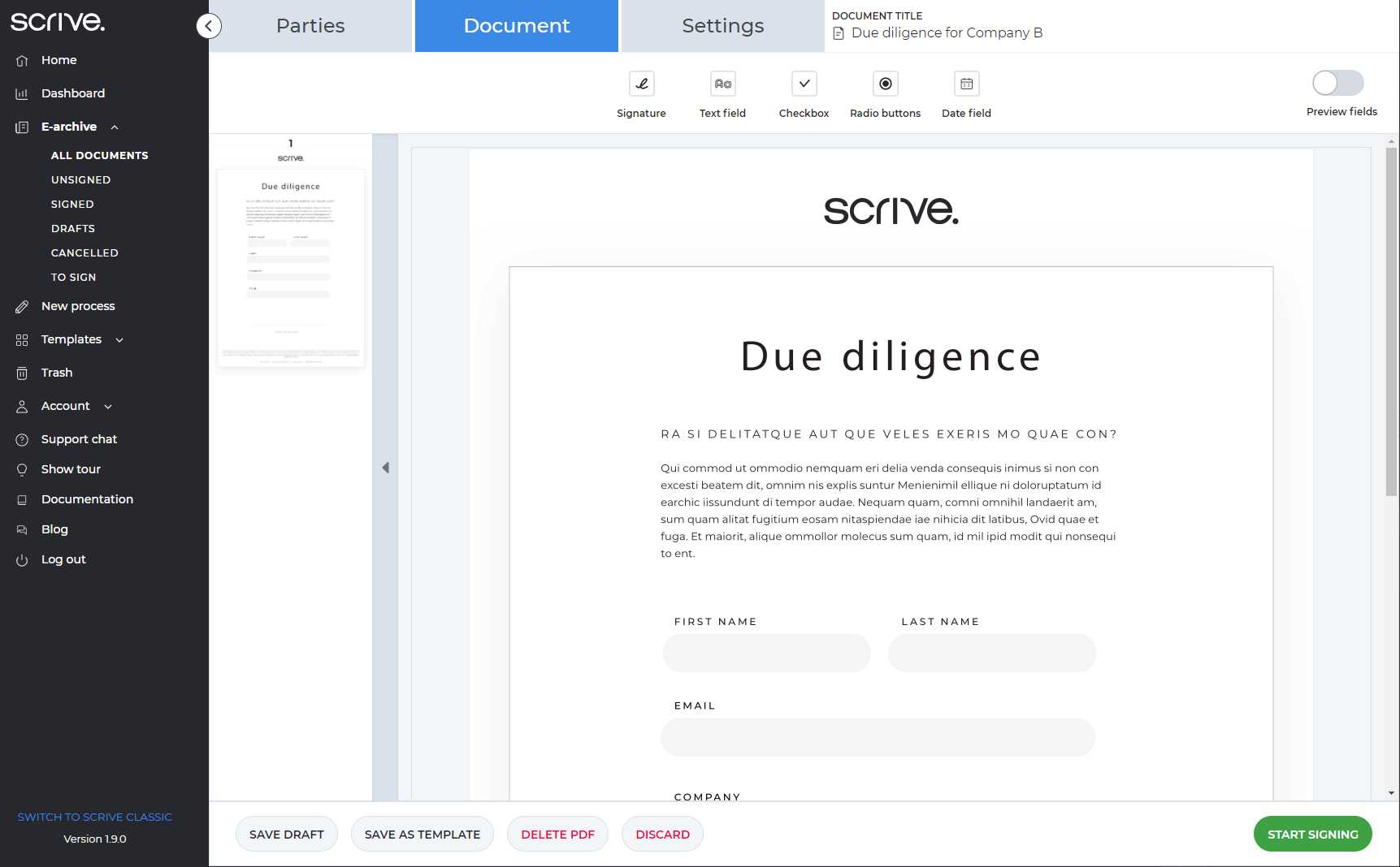 Die Scrive-Lösungen für die digitale Unterschrift sind aktuell für über 70 Integrationen verfügbar wie beispielsweise Microsoft Office. Damit die elektronische Signatur möglichst einfach und schnell, aber sicher erfolgen kann, hat Scrive seine Lösungen direkt in viele Anwendungen eingebettet. Digital unterschreiben soll dadurch so einfach wie das Ausdrucken von Dokumenten sein. Kunden laden ihr Vertragsdokument im Scrive-Portal hoch, legen Workflow-Optionen wie Identifizierung und Genehmigungen fest, fügen andere Unterzeichner hinzu und starten den automatisierten Unterzeichnungsprozess mit einem Klick.