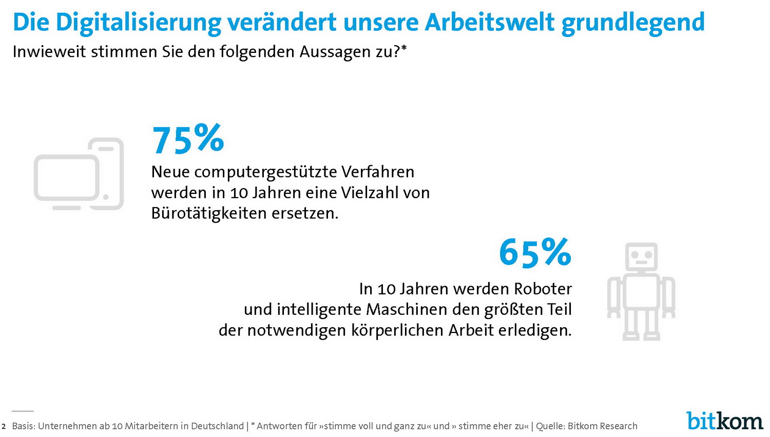 Weitere Details und Informationen zu der Studie finden sie in der Präsentation "Neue Arbeit - wie die Digitalisierung unsere Jobs verändert" in der Bilderstrecke unten.