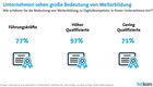 Die Digitalisierung verändert auch die Arbeitswelt. Berufe und Anforderungsprofile wandeln sich von Grund auf. Für qualifizierte Arbeitnehmer bieten sich dadurch hervorragende Jobchancen. Denn 54 Prozent der Unternehmen in Deutschland rechnen damit, dass es in den kommenden 10 Jahren mehr Arbeitsplätze für gut ausgebildete Beschäftigte geben wird. Nur 5 Prozent erwarten einen Rückgang.