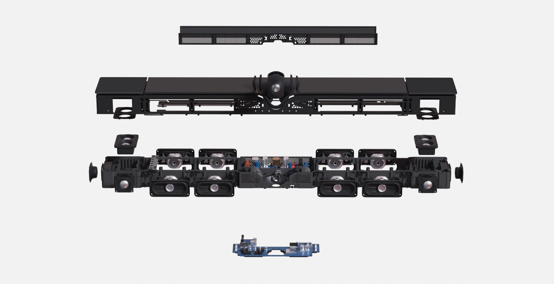 Devialet ist bekannt dafür, extrem viel Leistung in vergleichsweise kleine Lautsprecher zu packen. Und da ist die erste Soundbar des Unternehmens keine Ausnahme, denn die 1,2 Meter lange, 12 Kilogramm schwere Soundbar bietet insgesamt 17 Lautsprecher, darunter neun Vollbereichs-Aluminium-Treiber und acht Aluminium-Subwoofer.