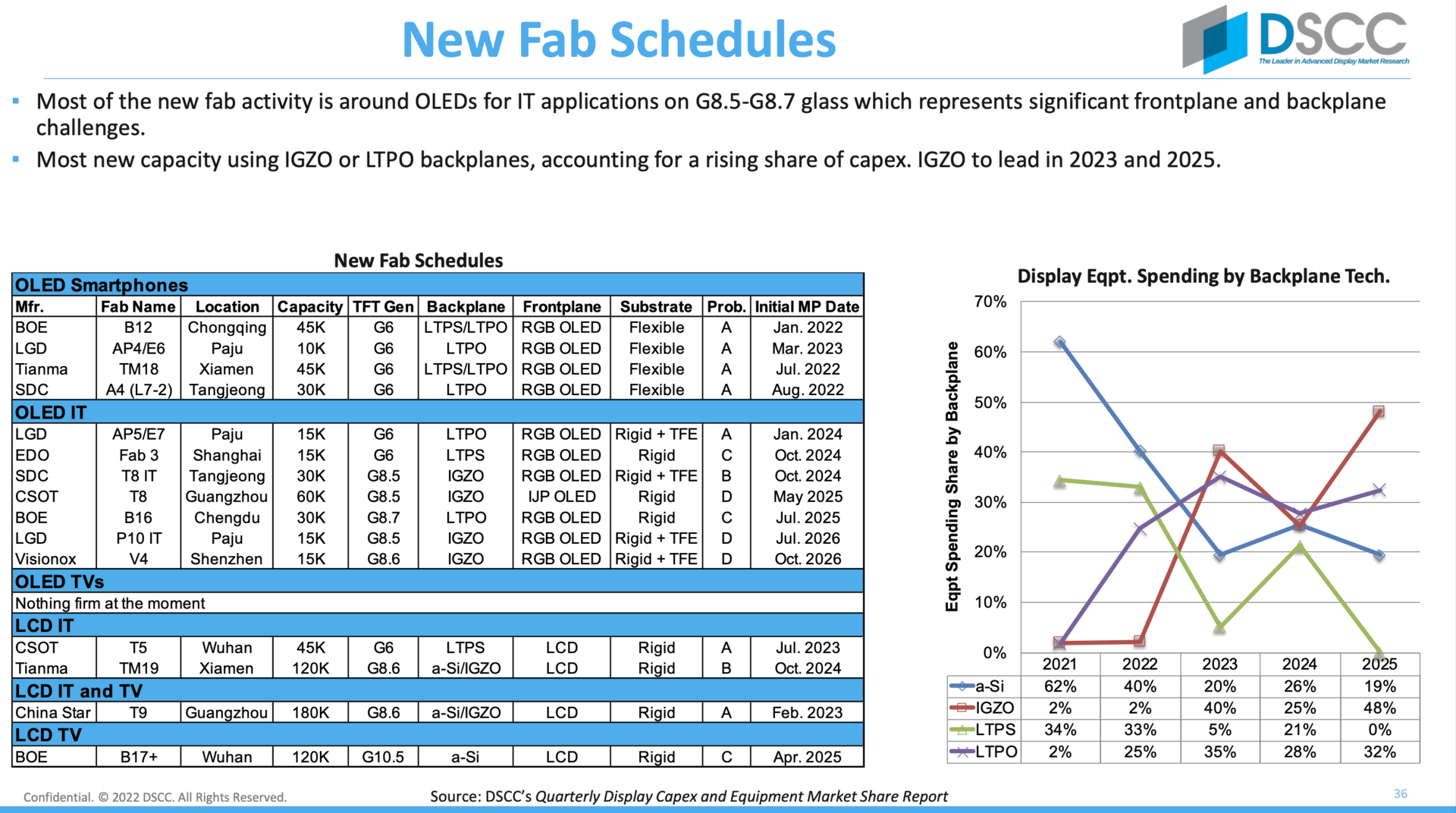 Das wird in den Jahren 2022 und 2023 auf jeden Fall passieren, so Young. Hersteller wie CHOT und Hannstar zeigen nach DSCC-Daten bereits eine negative operative Marge, während sie zu Pandemiezeiten sehr gute Zahlen vorweisen konnten. Weiter erschwert wird die Lage dadurch, dass in nächster Zeit weitere Kapazitäten aktiviert werden. Für LCD-Fabriken kommt zudem immer mehr Konkurrenz OLED im IT-Bereich dazu. 2024 bis 2026 sollen nach DSCC-Daten sieben OLED-Fabriken mit dem Fokus auf IT online gehen.