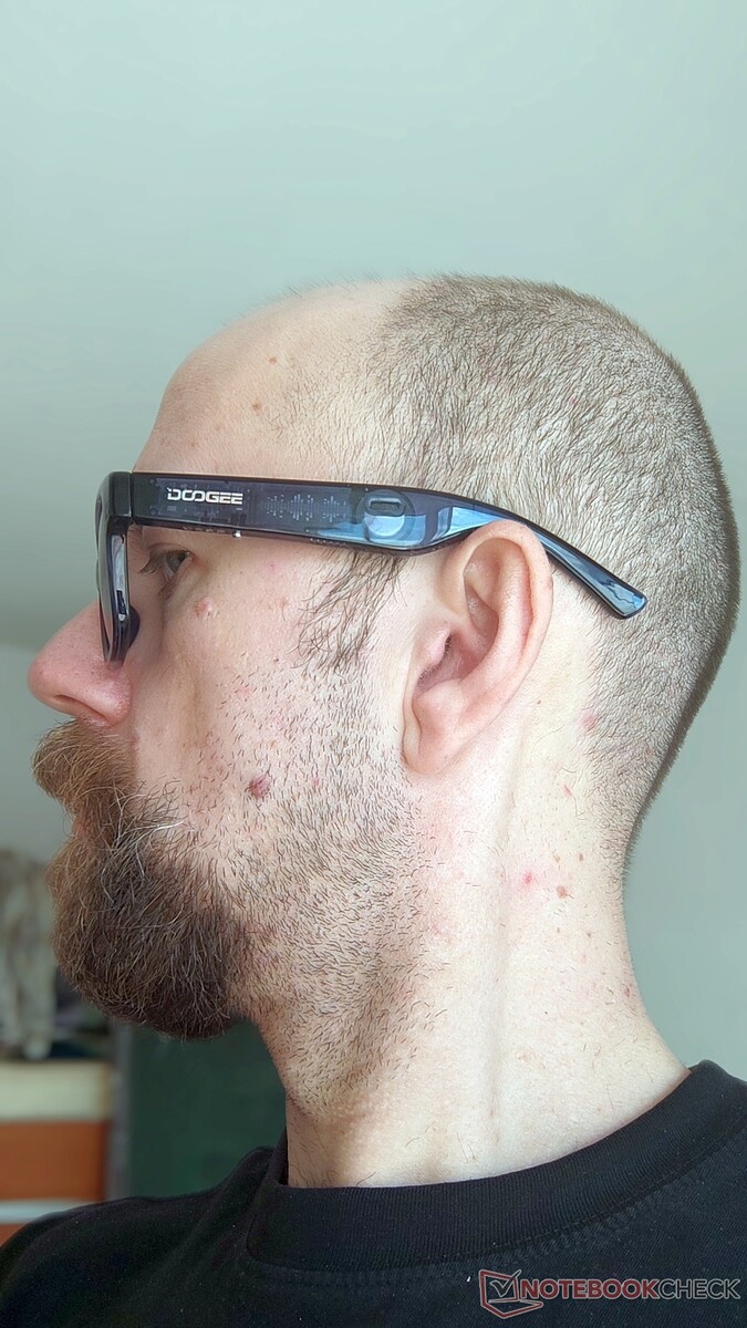 Der aus TR90 gefertigte Rahmen beherbergt Stereo-Lautsprecher und zwei 90-mAh-Akkus sowie die gesamte Schalttechnik, die für den Betrieb von Lautsprecher und Mikrofon erforderlich ist. Bluetooth 5.0 sollte für die meisten Nutzer ausreichen und der AAC-Codec sorgt für einen unerwartet guten Klang (Ehrlich gesagt hatte ich, aufgrund einiger Rezensionen, die ich vor dem Kauf des Doogee AJ01 gelesen habe, eine Katastrophe erwartet).