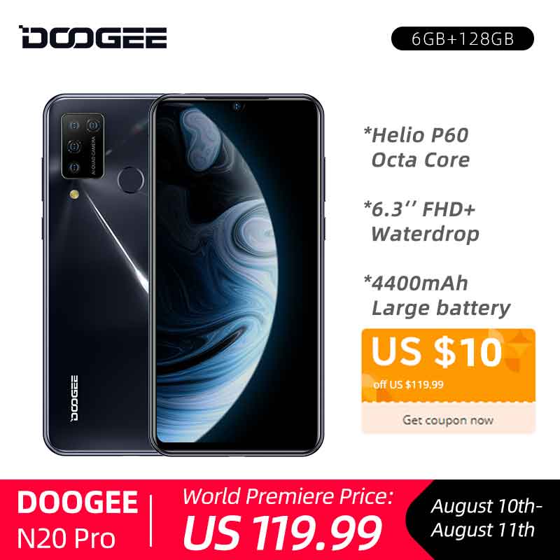 Doogee feiert die Premiere seines 6,3-Zoll-Smartphones N20 Pro, das mit MediaTek Helio P60 Octacore, 6 GB RAM, 128 GB Systemspeicher und einem 6,3 Zoll großen FHD+-IPS-Display mit 2.280 x 1.080 Pixeln und Waterdrop-Notch für die 16-MP-Frontkamera ausgestattet ist, mit einem Paukenschlag. Nur rund 120 US-Dollar (102 Euro) will Doogee als "World Premiere Price" haben.